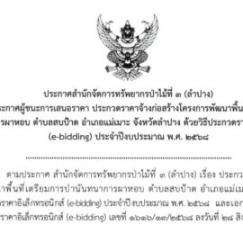 จัดซื้อจัดจ้าง ประกาศผู้ชนะการเสนอราคาโครงการจ้างก่อสร้างโครงการพัฒนาพื้นที่เตรียมการป่านันทนาการผาหอบ ตำบลสบป้าด อำเภอแม่เมาะ จังหวัดลำปาง […]