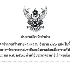 จัดซื้อจัดจ้าง ประกาศจังหวัดลำปาง เรื่อง ประกวดราคาจ้างก่อสร้างฝายผสมผสาน จำนวน 840 แห่ง ในพื้นที่จังหวัดลำปาง โครงการการบริหารจัดการทรัพยากรธรรมชาติและสิ่งแวดล้อมเพื่อความยั่งยืน (ชุมชน คน น้ำ ป่า) ประจำปีงบประมาณ พ.ศ. 2568 ด้วยวิธีประกวดราคาอิเล็กทรอนิกส์ (e-bidding) […]