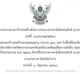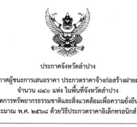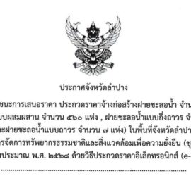 จัดซื้อจัดจ้าง ประกาศจังหวัดลำปาง เรื่อง ประกาศผู้ชนะการเสนอราคา ประกวดราคาจ้างก่อสร้างฝายผสมผสาน จำนวน 840 แห่ง ในพื้นที่จังหวัดลำปาง ประจำปีงบประมาณ พ.ศ. 2568 ด้วยวิธีประกวดราคาอิเล็กทรอนิกส์ (e-bidding) […]