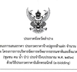 จัดซื้อจัดจ้าง ประกาศ เรื่อง ประกาศผู้ชนะการเสนอราคา ประกวดราคาจ้างปลูกกล้าแฝก จำนวน 500,000 กล้า ในพื้นที่จังหวัดลำปาง […]
