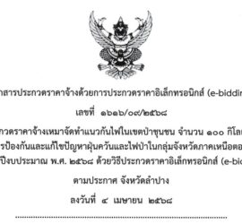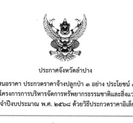 จัดซื้อจัดจ้าง ประกาศจังหวัดลำปาง เรื่อง ประกวดราคาจ้างเหมาจัดทำแนวกันไฟในเขตป่าชุนชน จำนวน 100 กิโลเมตร โครงการป้องกันและแก้ไขปัญหาฝุ่นควันและไฟป่าในกลุ่มจังหวัดภาคเหนือตอนบน 1 ประจำปีงบประมาณ พ.ศ. 2568 ด้วยวิธีประกวดราคาอิเล็กทรอนิกส์ (e-bidding) […]