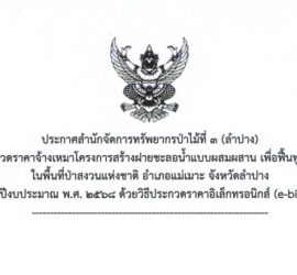 จัดซื้อจัดจ้าง ประกาศสำนักจัดการทรัพยากรป่าไม้ที่ 3 (ลำปาง) เรื่อง ประกวดราคาจ้างเหมาโครงการสร้างฝายชะลอน้ำแบบผสมผสาน เพื่อฟื้นฟูระบบนิเวศ ในพื้นที่ป่าสงวนแห่งชาติ อำเภอแม่เมาะ จังหวัดลำปาง ประจำปีงบประมาณ พ.ศ. 2568 ด้วยวิธีประกวดราคาอิเล็กทรอนิกส์ (e-bidding) […]