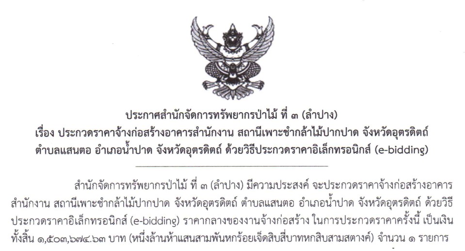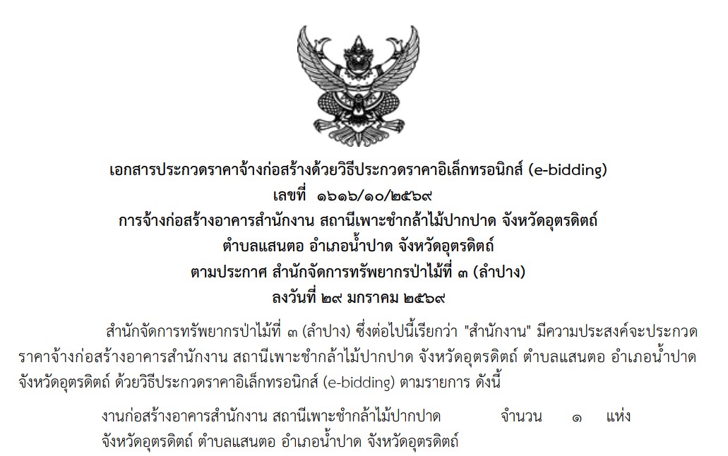 จัดซื้อจัดจ้าง เอกสารประกวดราคาจ้างก่อสร้างอาคารสำนักงาน สถานีเพาะชำกล้าไม้ปากปาด จังหวัดอุตรดิตถ์ ตำบลแสนตอ อำเภอน้ำปาด จังหวัดอุตรดิตถ์ ด้วยวิธีประกวดราคาอิเล็กทรอนิกส์ (e-bidding) […]