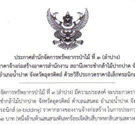 จัดซื้อจัดจ้าง ประกาศประกวดราคาจ้างก่อสร้างอาคารสำนักงาน สถานีเพาะชำกล้าไม้ปากปาด จังหวัดอุตรดิตถ์ ตำบลแสนตอ อำเภอน้ำปาด จังหวัดอุตรดิตถ์ ด้วยวิธีประกวดราคาอิเล็กทรอนิกส์ (e-bidding) […]