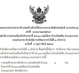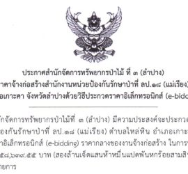 จัดซื้อจัดจ้าง ประกาศประกวดราคาจ้างก่อสร้างสำนักงานหน่วยป้องกันรักษาป่าที่ ลป.๑๘ (แม่เรียง) ตำบลไหล่หิน อำเภอเกาะคา จังหวัดลำปางด้วยวิธีประกวดราคาอิเล็กทรอนิกส์ (e-bidding) […]