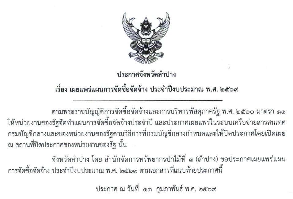 จัดซื้อจัดจ้าง ประกาศเผยแพร่แผนการจัดซื้อจัดจ้าง ประจำปีงบประมาณ พ.ศ. 2569 จ้างเหมาจัดทำแนวกันไฟป่าสงวนแห่งชาติในพื้นที่จังหวัดลำปาง จำนวน 800 กิโลเมตร โครงการป้องกันและแก้ไขปัญหาฝุ่นควันและไฟป่าในกลุ่มจังหวัดภาคเหนือตอนบน 1 ประจำปีงบประมาณ พ.ศ. 2569 […]
