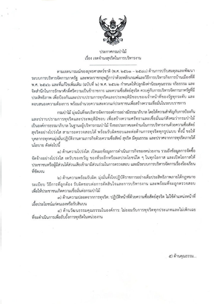 วันที่ 6 พฤษภาคม 2568 เวลา 10.00 น. สำนักจัดการทรัพยากรป่าไม้ที่ 3 (ลำปาง) จัดกิจกรรม ประกาศเจตนารมณ์การรวมพลังขับเคลื่อนเป็นองค์กรคุณธรรมต้นแบบ ประจำปีงบประมาณ พ.ศ.2568 และประกาศข้อกำหนดจริยธรรมของเจ้าหน้าที่กรมป่าไม้ และแสดงสัญลักษณ์การต่อต้านทุจริต สำนักจัดการทรัพยากรป่าไม้ที่ 3 (ลำปาง) เพื่อให้เป็นองค์กรคุณธรรมต้นแบบอย่างยั่งยืนตามหลัก “คุณธรรมนำการพัฒนา”ภายใต้คุณธรรม 5 ประการ อันประกอบด้วย พอเพียง วินัย สุจริต จิตอาสา และกตัญญู จาก “ปัญหาที่อยากแก้” และ “ความดีที่อยากทำ” และร่วมกันขับเคลื่อนให้องค์กรเป็นองค์กรคุณธรรม โดยยึดมั่นในข้อกำหนดจริยธรรมของเจ้าหน้าที่กรมป่าไม้ ตามนโยบายของกรมป่าไม้ โดยมีนายจีระ ทรงพุฒิ ผู้อำนวยการสำนักจัดการทรัพยากรป่าไม้ที่ 3 (ลำปาง) เป็นประธาน พร้อมผู้อำนวยการส่วนทุกส่วน ข้าราชการ ลูกจ้างประจำ พนักงานราชการและเจ้าหน้าที่ในสังกัดร่วมกิจกรรมในครั้งนี้ ณ สำนักจัดการทรัพยากรป่าไม้ที่ 3 (ลำปาง)