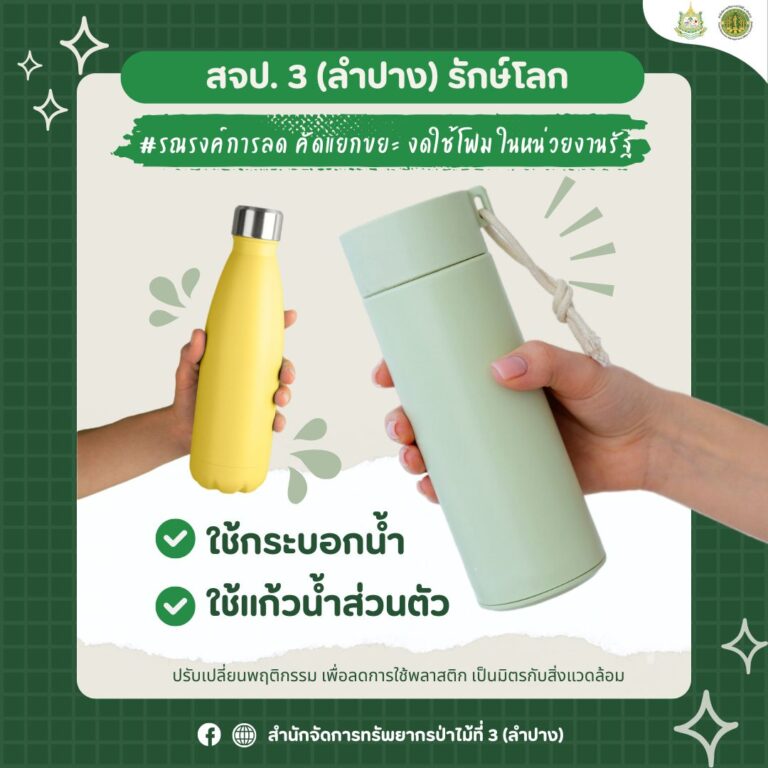 – รณรงค์การใช้กระบอกน้ำ แก้วน้ำส่วนตัว เพื่อลดปริมาณขยะ