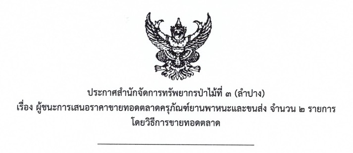 จัดซื้อจัดจ้าง ประกาศสำนักจัดการทรัพยากรป่าไม้ที่ 3 (ลำปาง) เรื่อง ผู้ชนะการเสนอราคาขายทอดตลาดครุภัณฑ์ยานพาหนะและขนส่ง จำนวน 2 รายการ โดยวิธีการขายทอดตลาด by สำนักจัดการทรัพยากรป่าไม้ที่ ๓ (ลำปาง)|เผยแพร่แล้ว 27 พฤศจิกายน 2025 ประกาศสำนักจัดการทรัพยากรป่าไม้ที่ 3 (ลำปาง) เรื่อง ผู้ชนะการเสนอราคาขายทอดตลาดครุภัณฑ์ยานพาหนะและขนส่ง จำนวน 2 รายการ โดยวิธีการขายทอดตลาด>>>>> รายละเอียด ประกาศสำนักจัดการทรัพยากรป่าไม้ที่ 3 (ลำปาง) เรื่อง ผู้ชนะการเสนอราคาขายทอดตลาดครุภัณฑ์ยานพาหนะและขนส่ง จำนวน 2 รายการ โดยวิธีการขายทอดตลาด