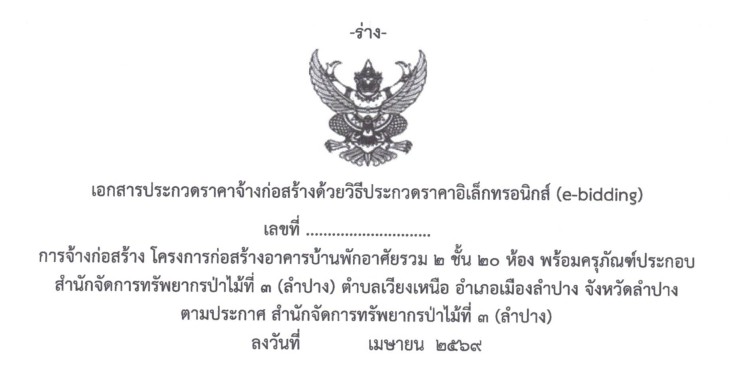 จัดซื้อจัดจ้าง (ร่าง) เอกสารประกวดราคาก่อสร้างอาคารบ้านพักอาศัยรวม 2 ชั้น 20 ห้อง พร้อมครุภัณฑ์ประกอบ สำนักจัดการทรัพยากรป่าไม้ที่ 3 (ลำปาง) ตำบลเวียงเหนือ อำเภอเมืองลำปาง จังหวัดลำปาง by สำนักจัดการทรัพยากรป่าไม้ที่ ๓ (ลำปาง)|เผยแพร่แล้ว 1 เมษายน 2026 (ร่าง) ประกาศสำนักจัดการทรัพยากรป่าไม้ที่ 3 (ลำปาง) เรื่อง เอกสารประกวดราคาก่อสร้างอาคารบ้านพักอาศัยรวม 2 ชั้น 20 ห้อง พร้อมครุภัณฑ์ประกอบ สำนักจัดการทรัพยากรป่าไม้ที่ 3 (ลำปาง) ตำบลเวียงเหนือ อำเภอเมืองลำปาง จังหวัดลำปาง >>>>> รายละเอียด (ร่าง) ประกาศสำนักจัดการทรัพยากรป่าไม้ที่ 3 (ลำปาง) เรื่อง เอกสารประกวดราคาก่อสร้างอาคารบ้านพักอาศัยรวม 2 ชั้น 20 ห้อง พร้อมครุภัณฑ์ประกอบ สำนักจัดการทรัพยากรป่าไม้ที่ 3 (ลำปาง) ตำบลเวียงเหนือ อำเภอเมืองลำปาง จังหวัดลำปาง
