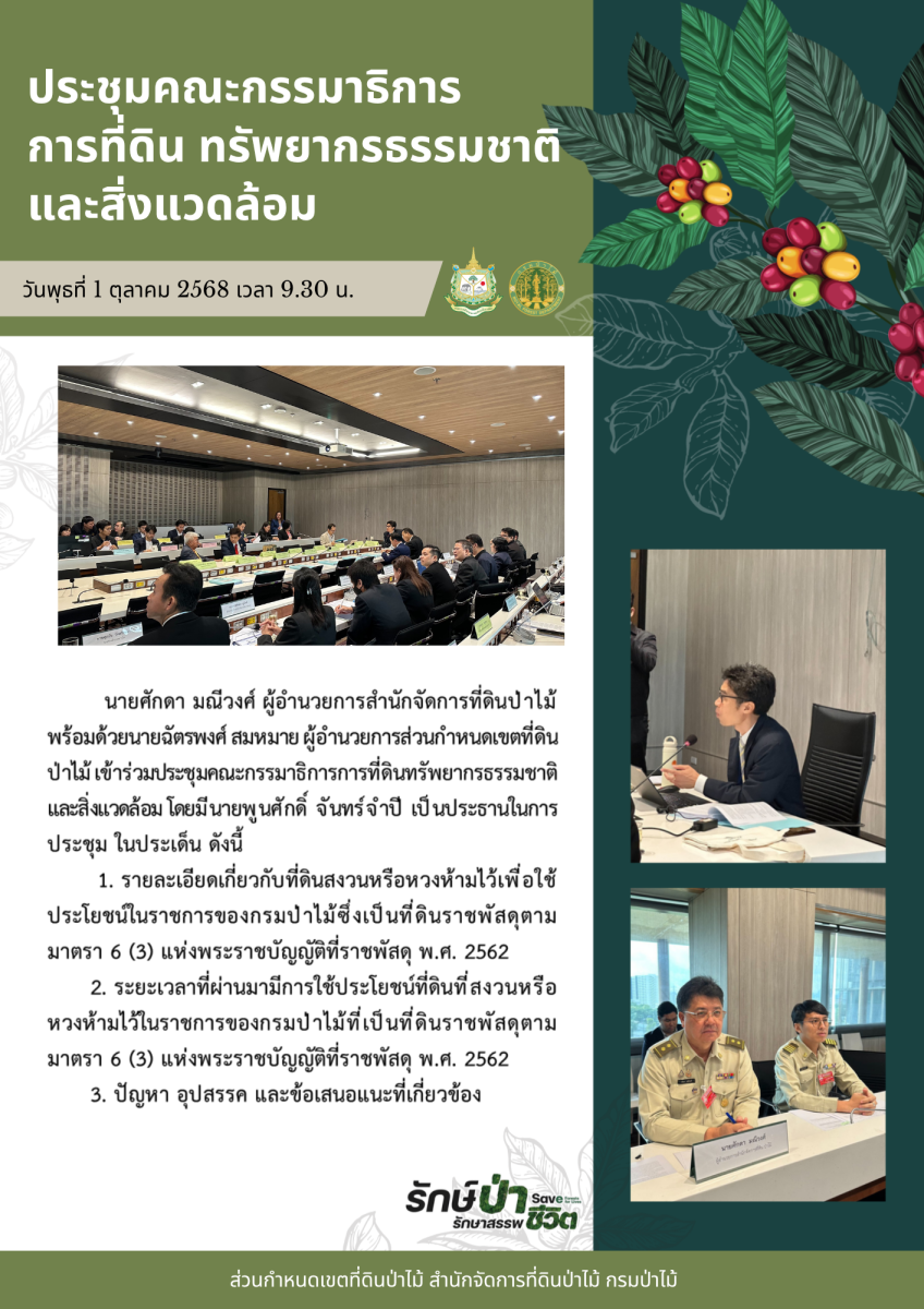 ผู้อำนวยการส่วนจัดการสิทธิ์การใช้ที่ดินป่าไม้ เข้าร่วมประชุมคณะกรรมการนโยบายที่ดินแห่งชาติ (คทช.) ครั้งที่ 3/๒๕๖๖ โดยมีรองนายกรัฐมนตรีและรัฐมนตรี