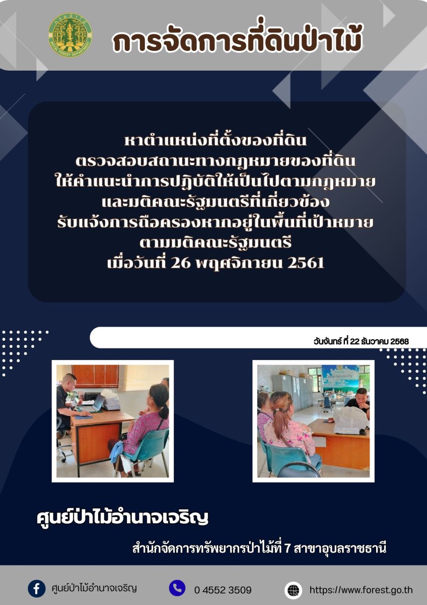 วันที่ 18 พฤศจิกายน 2566 นายศักดา มณีวงศ์ ผู้อำนวยการสำนักจัดการที่ดินป่าไม้ พร้อมด้วย นายอธิพงษ์ ก่อผล