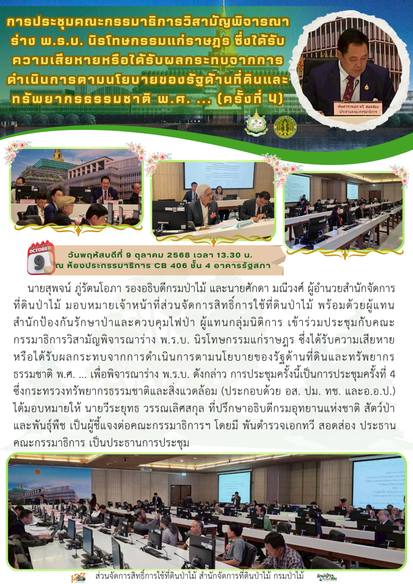 ผู้อำนวยการส่วนจัดการสิทธิ์การใช้ที่ดินป่าไม้ เข้าร่วมประชุมคณะกรรมการนโยบายที่ดินแห่งชาติ (คทช.) ครั้งที่ 3/๒๕๖๖ โดยมีรองนายกรัฐมนตรีและรัฐมนตรี
