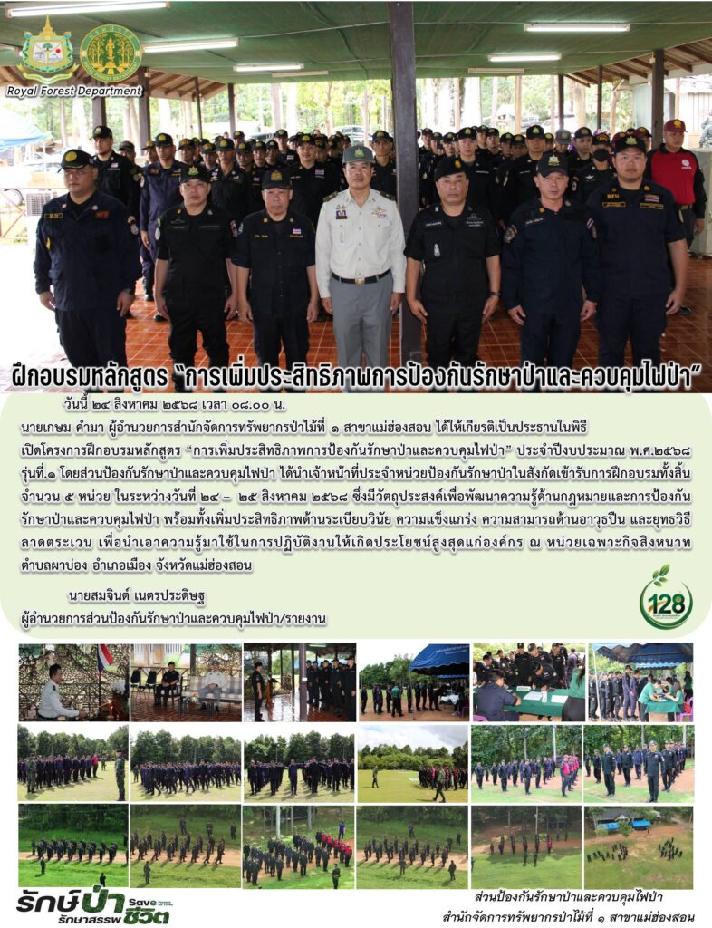 โครงการฝึกอบรมหลักสูตร “การเพิ่มประสิทธิภาพการป้องกันรักษาป่าและควบคุมไฟป่า” ประจำปีงบประมาณ พ.ศ.๒๕๖๘ 24 สิงหาคม 2568 เวลา 08.00 น.นายเกษม คำมา ผู้อำนวยการสำนักจัดการทรัพยากรป่าไม้ที่ 1 สาขาแม่ฮ่องสอน ได้ให้เกียรติเป็นประธานในพิธีเปิดโครงการฝึกอบรมหลักสูตร “การเพิ่มประสิทธิภาพการป้องกันรักษาป่าและควบคุมไฟป่า” ประจำปีงบประมาณ พ.ศ.2568 รุ่นที่.1 โดยส่วนป้องกันรักษาป่าและควบคุมไฟป่า ได้นำเจ้าหน้าที่ประจำหน่วยป้องกันรักษาป่าในสังกัดเข้ารับการฝึกอบรมทั้งสิ้น จำนวน ๕ หน่วย ในระหว่างวันที่ 24 – 25 สิงหาคม 2568 ซึ่งมีวัตถุประสงค์เพื่อพัฒนาความรู้ด้านกฎหมายและการป้องกันรักษาป่าและควบคุมไฟป่า พร้อมทั้งเพิ่มประสิทธิภาพด้านระเบียบวินัย ความแข็งแกร่ง ความสามารถด้านอาวุธปืน และยุทธวิธีลาดตระเวน เพื่อนำเอาความรู้มาใช้ในการปฏิบัติงานให้เกิดประโยชน์สูงสุดแก่องค์กร ณ หน่วยเฉพาะกิจสิงหนาท ตำบลผาบ่อง อำเภอเมือง จังหวัดแม่ฮ่องสอน Post Views: 31
