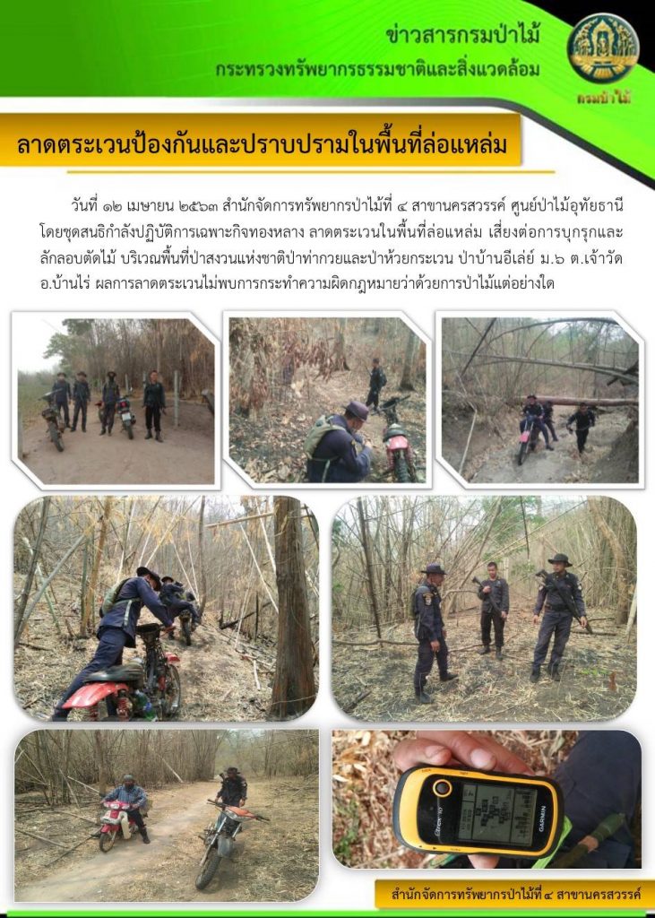 ปฏิบัติการลาดตระเวนพื้นที่ป่าสงวนแห่งชาติป่าท่ากวยและป่าห้วยกระเวน อ.บ้านไร่ จ.อุทัยธานี13 เมษายน 2020 ใน ข่าว by amon Post Views: 534