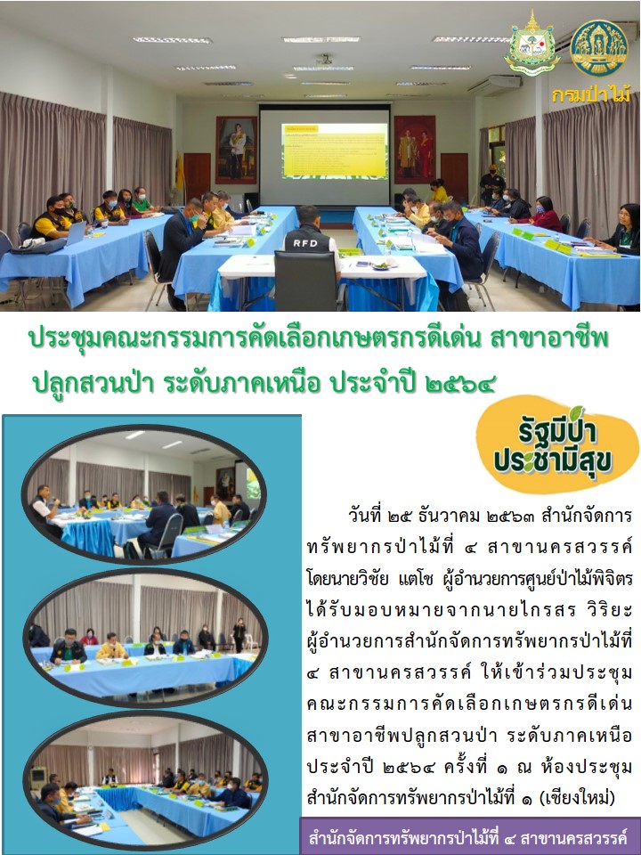 ประชุมคณะกรรมการคัดเลือกเกษตรกรดีเด่น สาขาอาชีพปลูกสวนป่า ระดับภาคเหนือ ประจำปี 256430 ธันวาคม 2020 ใน ข่าว by amon Post Views: 335