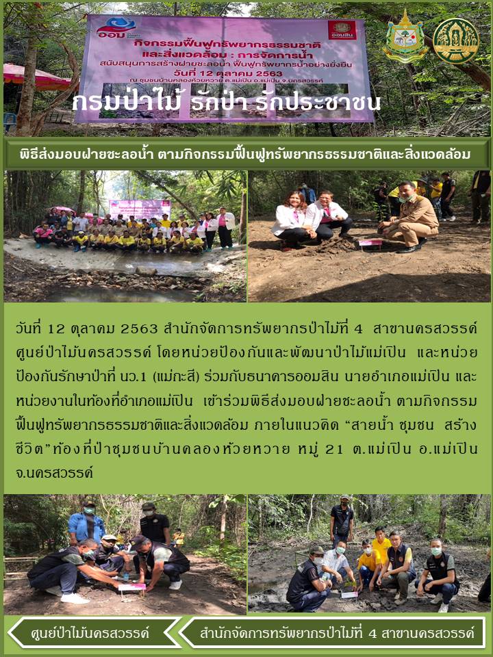 พิธีส่งมอบฝายชะลอน้ำ ท้องที่ป่าชุมชนบ้านคลองห้วยหวาย