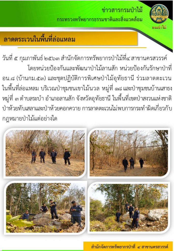 ลาดตระเวนป่าชุมชนเขาไม้นวล ต.ระบำ อ.ลานสัก จ.อุทัยธานี6 กุมภาพันธ์ 2020 ใน ข่าว by amon Post Views: 401