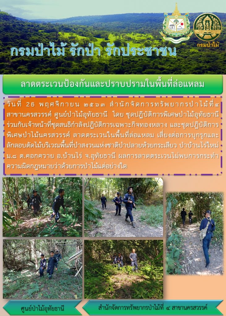 ลาดตระเวนพื้นที่ป่าสงวนแห่งชาติป่าปลายห้วยกระเสียว ป่าบ้านไร่ใหม่ จ.อุทัยธานี4 ธันวาคม 2020 ใน ข่าว by amon Post Views: 595