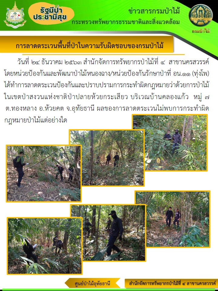 ลาดตระเวนพื้นที่ป่าสงวนแห่งชาติป่าปลายห้วยกระเสียว อ.ห้วยคต จ.อุทัยธานี30 ธันวาคม 2020 ใน ข่าว by amon Post Views: 507