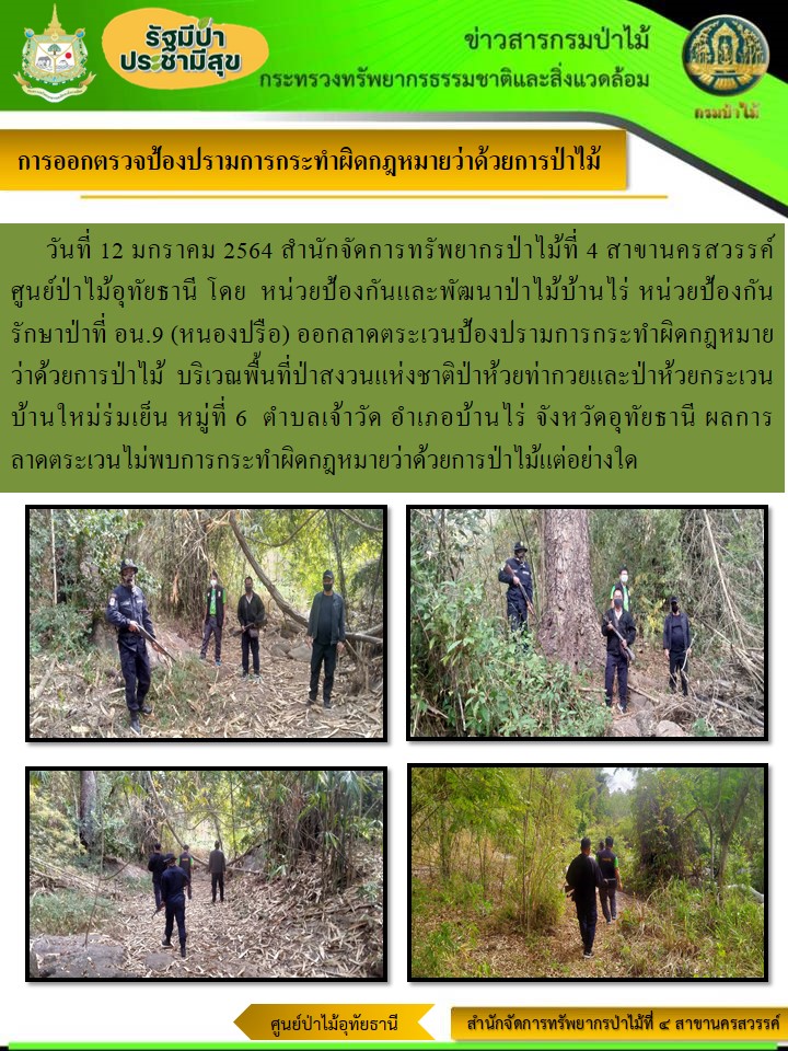 ลาดตระเวนพื้นที่ป่าสงวนแห่งชาติป่าห้วยท่ากวยและป่าห้วยกระเวน อ.บ้านไร่ จ.อุทัยธานี18 มกราคม 2021 ใน ข่าว by amon Post Views: 427