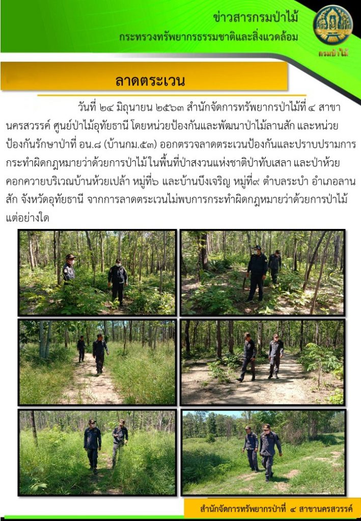 ลาดตระเวน พื้นที่ป่าสงวนแห่งชาติป่าทับเสลา และป่าห้วยคอกควายบริเวณบ้านห้วยเปล้า จ.อุทัยธานี8 กรกฎาคม 2020 ใน ข่าว by amon Post Views: 329