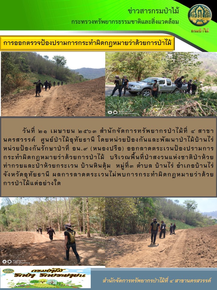 ลาดตระเวน พื้นที่ป่าสงวนแห่งชาติป่าห้วยท่ากวยและป่าห้วยกระเวน อ.บ้านไร่ จ.อุทัยธานี22 เมษายน 2020 ใน ข่าว by amon Post Views: 489