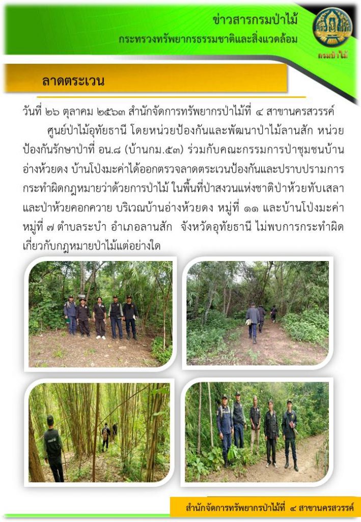 ลาดตระเวน พื้นที่ป่าสงวนแห่งชาติป่าห้วยทับเสลาและป่าห้วยคอกควาย บริเวณบ้านอ่างห้วยดง27 ตุลาคม 2020 ใน ข่าว by amon Post Views: 645