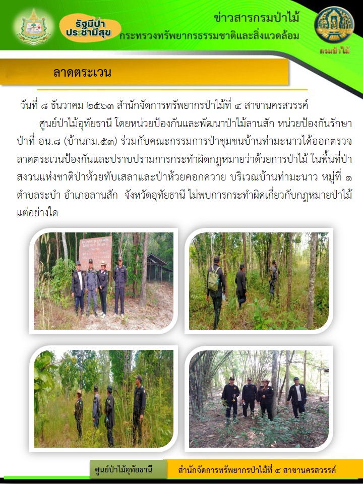 ลาดตระเวน พื้นที่ป่าสงวนแห่งชาติห้วยทับเสลาและป่าห้วยคอกควาย จ.อุทัยธานี16 ธันวาคม 2020 ใน ข่าว by amon Post Views: 369
