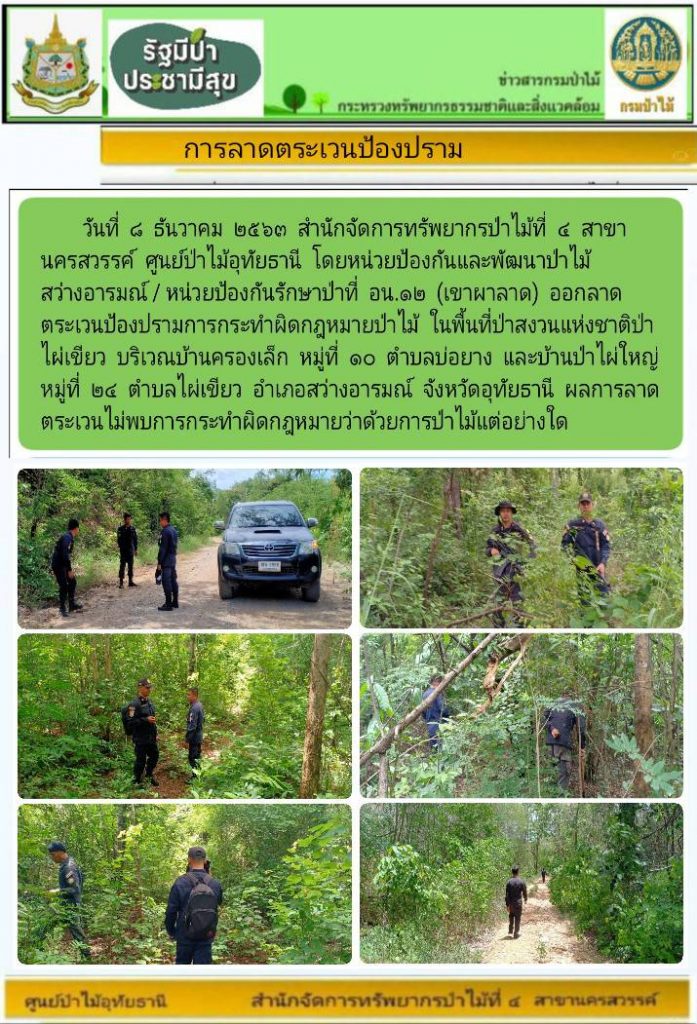 ลาดตระเวน พื้นที่ป่าสงวนแห่งชาติป่าไผ่เขียว บริเวณ บ้านครองเล็ก จ.อุทัยธานี16 ธันวาคม 2020 ใน ข่าว by amon Post Views: 469
