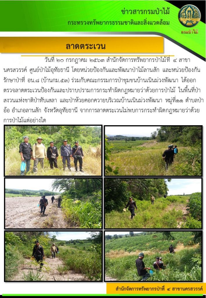 ลาดตระเวน พื้นที่ ป่าสงวนแห่งชาติป่าทับเสลาและ ป่าห้วยคอกควาย จ.อุทัยธานี