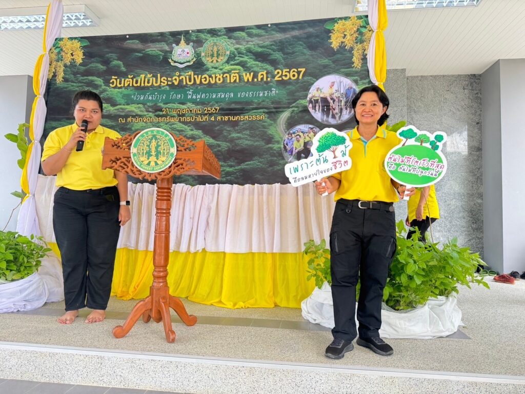 วันอังคารที่ 21 พฤษภาคม 2567 สำนักจัดการทรัพยากรป่าไม้ที่ 4 สาขานครสวรรค์ จัดกิจกรรมปลูกต้นไม้ เนื่องในวันต้นไม้ประจำปีของชาติ พ.ศ. 2567 โดยมีผู้อำนวยการส่วนทุกส่วน ผู้อำนวยการศูนย์ป่าไม้นครสวรรค์ ข้าราชการและเจ้าหน้าที่ในสังกัด เข้าร่วมกิจกรรมโดยพร้อมเพรียงกัน และได้รับเ้กียรติจากนายสิทธิพงษ์ โกวพัฒนกิจ ผู้อำนวยการสำนักงานทรัพยากรธรรมชาติและสิ่งแวดล้อมจังหวัดนครสวรรค์ เป็นประธานในพิธี ได้ร่วมกันปลูกต้นเสลาและต้นทองอุไร บริเวณด้านหน้าอาคารสำนักจัดการทรัพยากรป่าไม้ที่ 4 สาขานครสวรรค์
