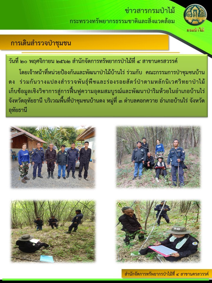 วางแปลงสำรวจพันธุ์พืชและร่องรอยสัตว์ป่า บริเวณพื้นที่ป่าชุมชนบ้านดง ต.คอกควาย อ.บ้านไร่ จ.อุทัยธานี21 พฤศจิกายน 2019 ใน ข่าว by amon Post Views: 539