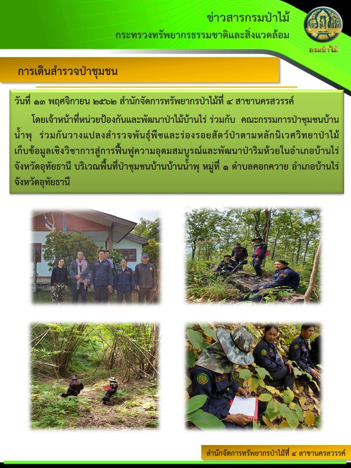 วางแปลงสำรวจพันธุ์พืชและร่องรอยสัตว์ป่าตามหลักนิเวศวิทยาป่าไม้