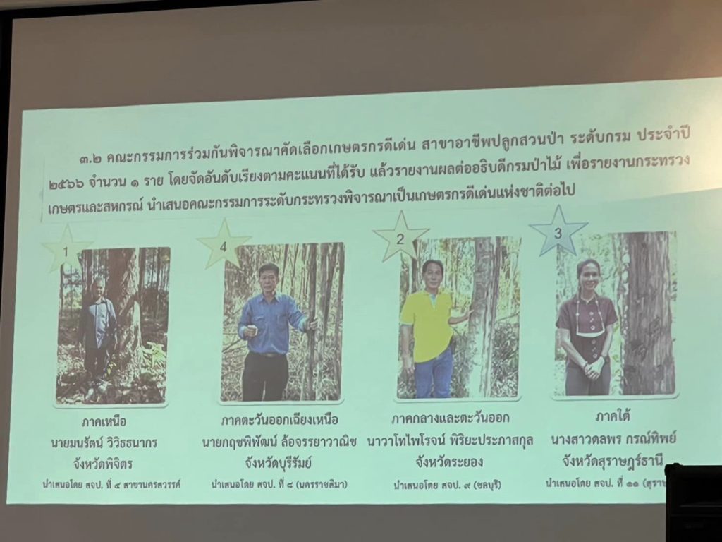 วันอังคารที่ 7 กุมภาพันธ์ 2566 นายอนันต์ชัย ทับทิม ผู้อำนวยการสำนักจัดการทรัพยากรป่าไม้ที่ 4 สาขานครสวรรค์ พร้อมด้วยผู้อำนวยการส่วนส่งเสริมการปลูกป่า ผู้อำนวยการศูนย์ป่าไม้จังหวัดพิจิตร และหัวหน้าฝ่ายปลูกป่า ร่วมนำเสนอ เกษตรกรดีเด่นสาขาอาชีพปลูกสวนป่า ระดับภาคเหนือ นายมนรัตน์ วิวิธธนากร เกษตรกรจังหวัดพิจิตร เป็นตัวแทนคัดเลือกในระดับกรม เพื่อรายงานกระทรวงเกษตรและสหกรณ์ นำเสนอคณะกรรมการระดับกระทรวงเพื่อพิจารณาเป็นเกษตรกรดีเด่นระดับชาติต่อไป