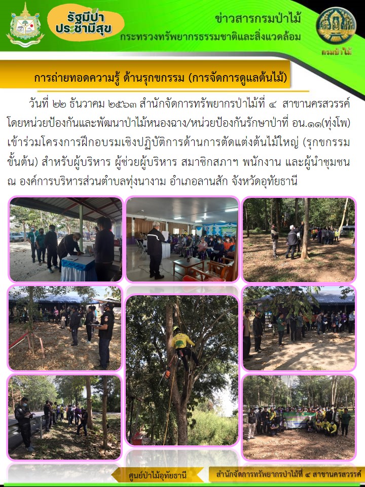 โครงการฝึกอบรมเชิงปฏิบัติการด้านการตัดแต่งต้นไม้ใหญ่ (รุกขกรรมขั้นต้น) ณ อบต.ทุ่งนางาม จ.อุทัยธานี
