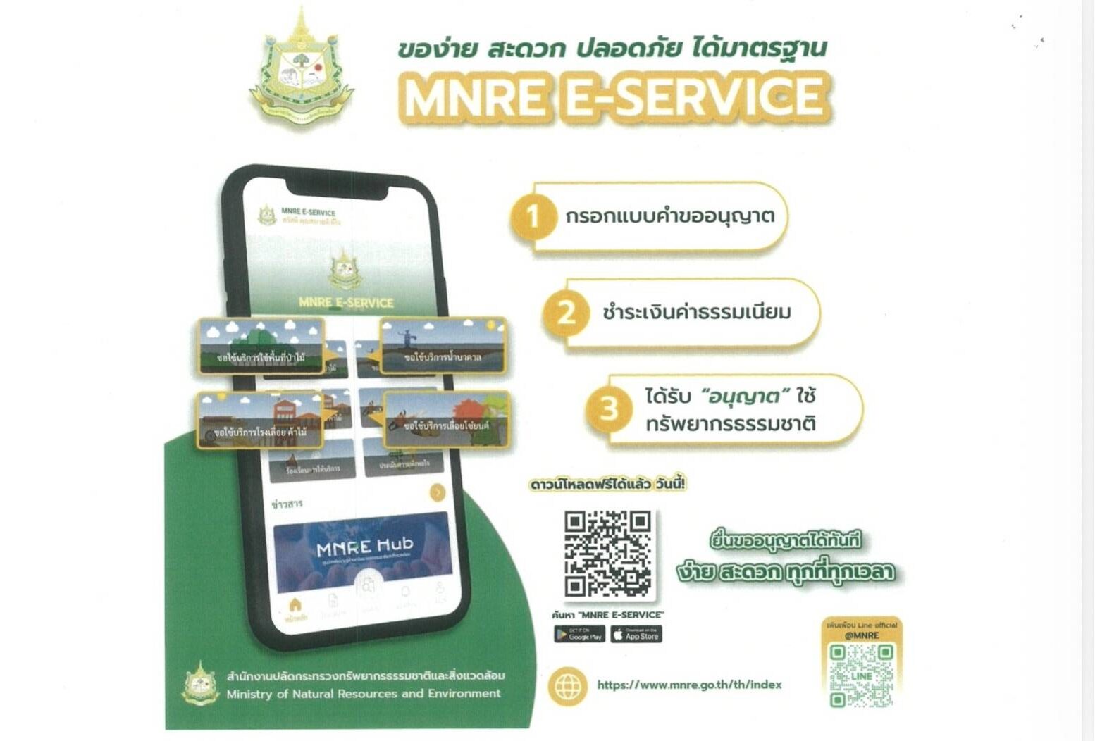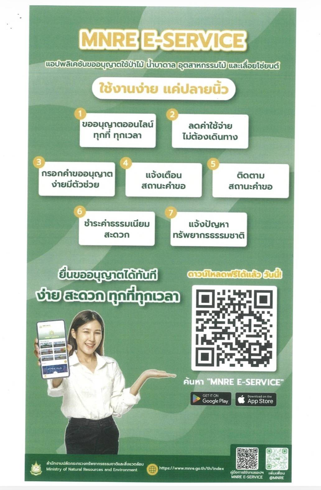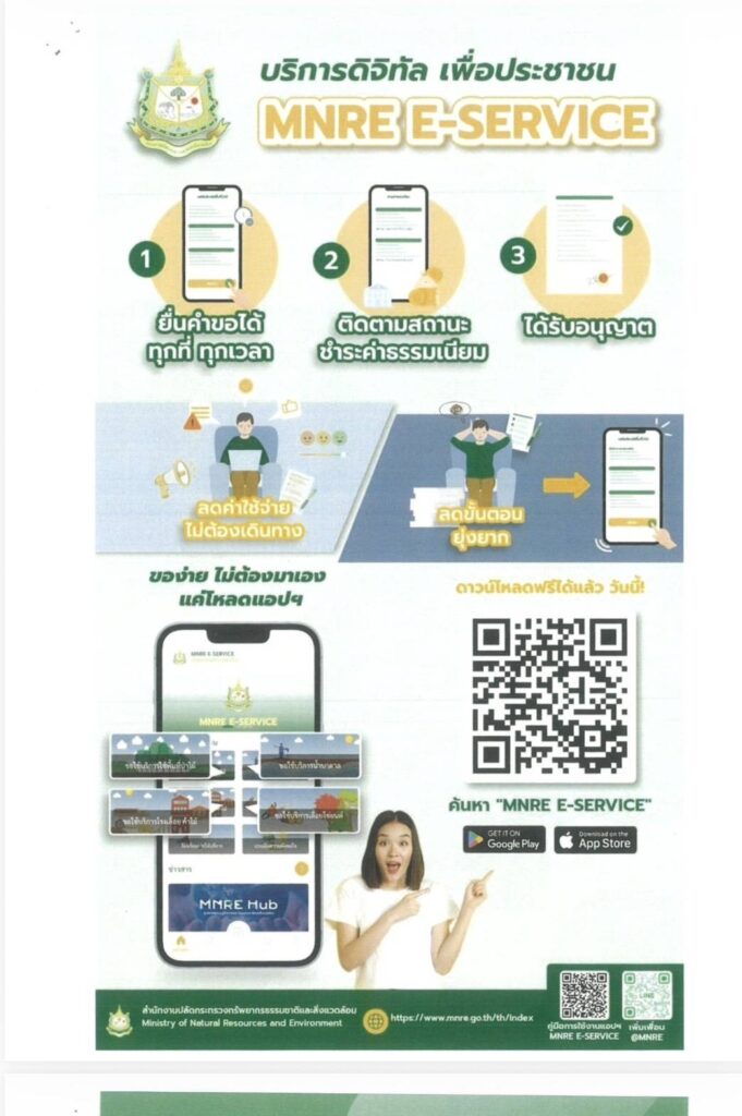 การใช้งานระบบดิจิทัลเพื่อบริการประชาชน สำหรับการบริหารจัดการทรัพยากรธรรมชาติและสิ่งแวดล้อม (Green Intelligence Digital Services) หรือระบบ MNRE e-Services
