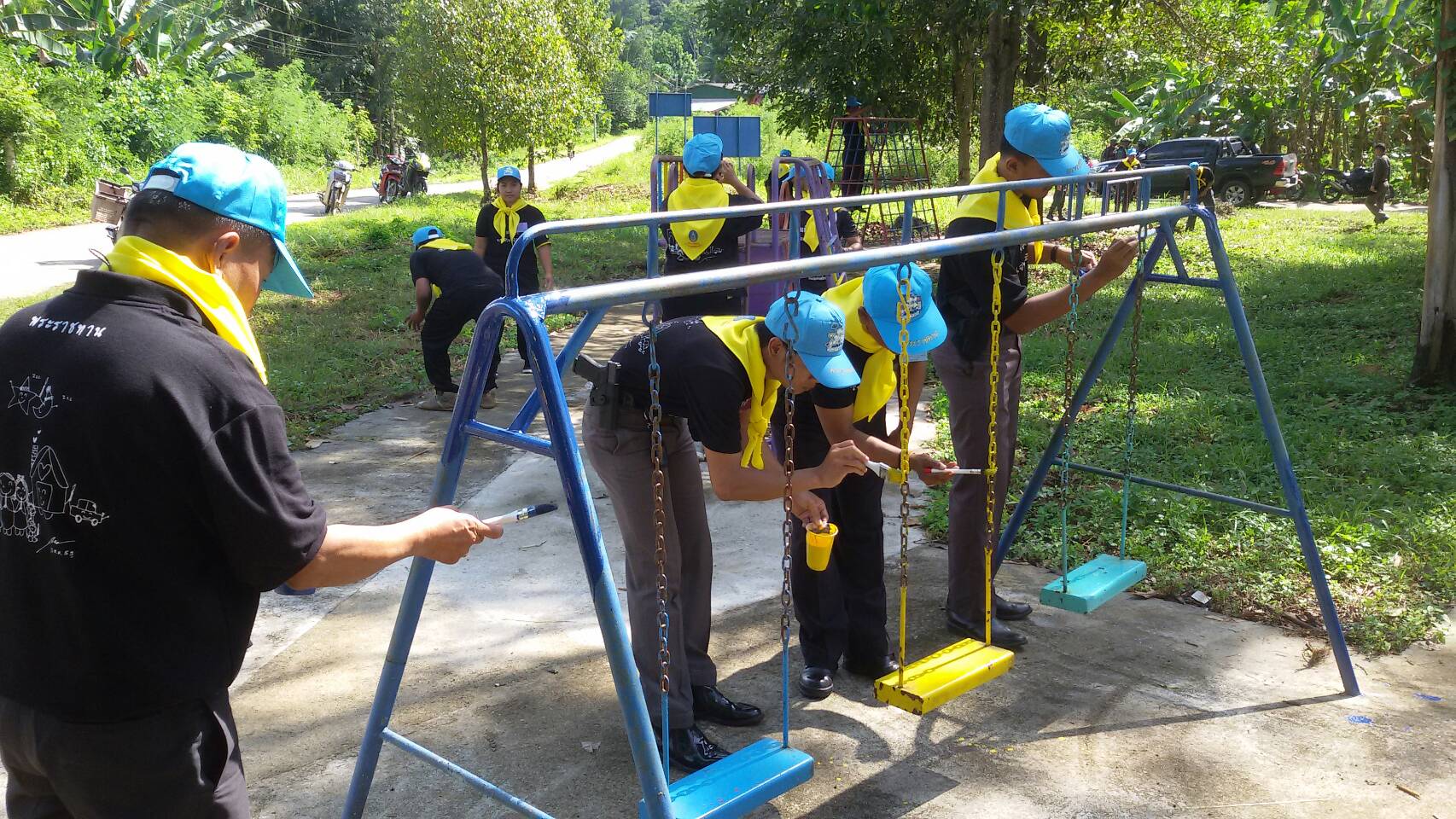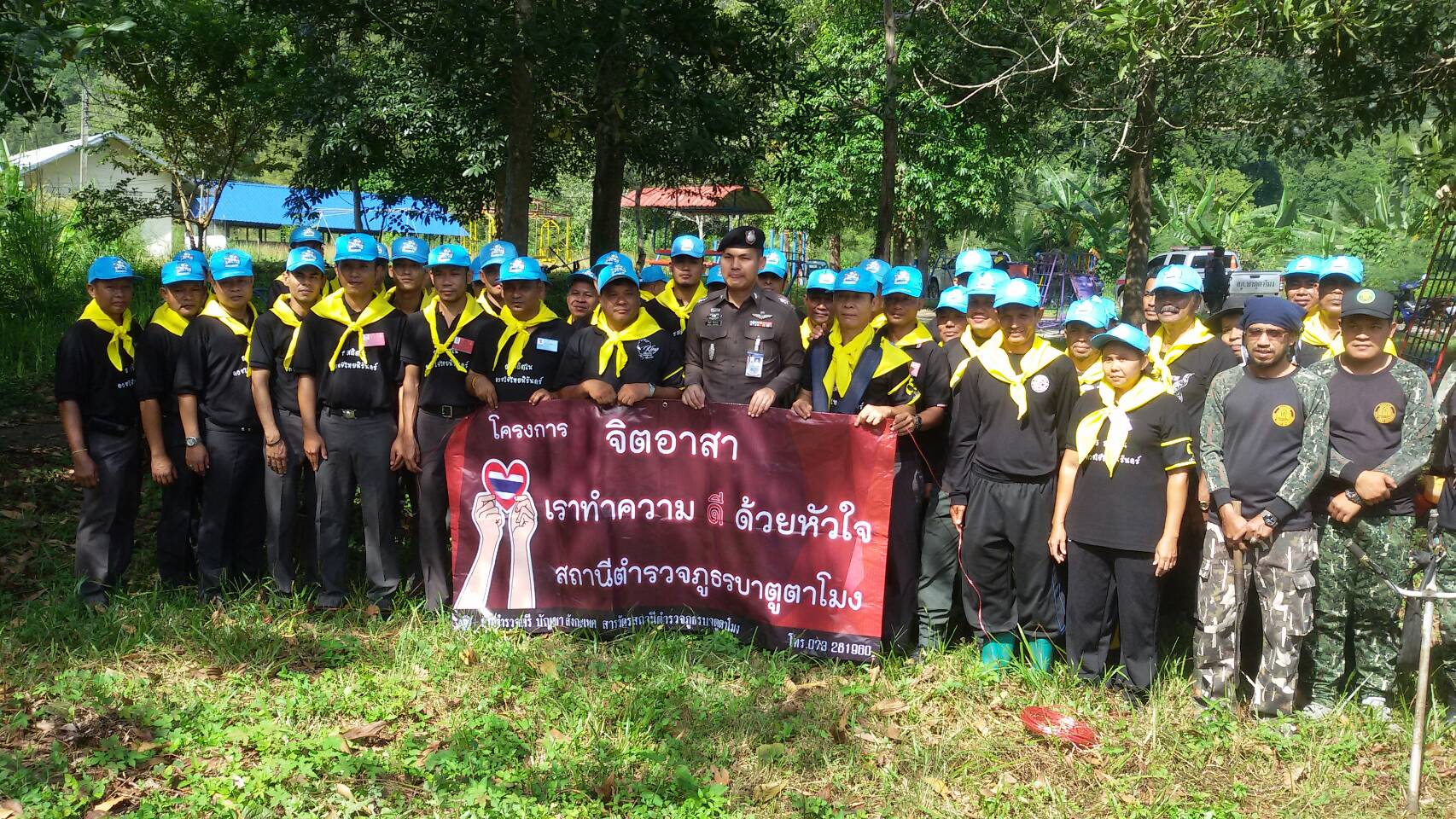วันนี้ 25 ตค.60 เวลา 08.00 น.เจ้าหน้าที่หน่วย ยล.4,8 สภ.บาตูตาโมง จิตอาสาเฉพาะกิจและกำนัน ผญ.ม.5 ต.ถ้ำทะลุ อ.บันนังสตา จ.ยะลา ได้ร่วมกันดำเนินกิจกรรมทำดีด้วยหัวใจ เพื่อถวายเป็นพระราชกุศลแด่พ่อหลวง ร.9 โดยร่วมกันทำความดี พัฒนาชุมชน ทำความสะอาด ปรับปรุงภูมิทัศน์ บริเวณลานกีฬา สนามเด็กเล่น บ้านตังกะเด็ง ม.5 ต.ถ้ำทะลุ อ.บันนังสตา จ.ยะลา