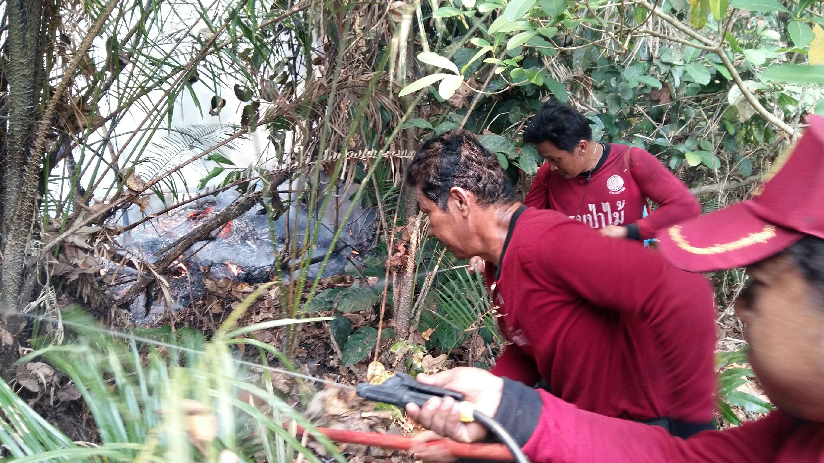 2. ชุดที่ 2 เข้าดับไฟป่าบริเวณพื้นที่ บ้านลูโบ๊ะซามา หมู่ที่ 8 ต.ปาเสมัส อ.สุไหงโก-ลก ต่อจากภาคเช้า พิกัด 47N 830929 UTM 672263 ป่าสงวนแห่งชาติป่าลุ่มน้ำบางนราแปลงที่ 2 อ.สุไหงโก-ลก สภาพพื้นที่เป็นป่าพรุ การดับไฟใช้ไม้ตบ/ถังฉีด และปฏิบัติงานร่วมทำแนวกันไฟกับรถแบคโฮ ของจังหวัดนราธิวาส โดยการเก็บแนว ระยะการทำแนววันนี้ประมาณ 1.5 กิโลเมตร ซึ่งสามารถปิดหัวไฟสกัดการลุกลามได้ตลอดแนวเขตป่าสงวน และขสป.เฉลิมพระเกียรติฯ พื้นที่เสียหายทั้งในเขตป่าสงวนและในเขตป่าอนุรักษ์ ประมาณ 100 ไร่