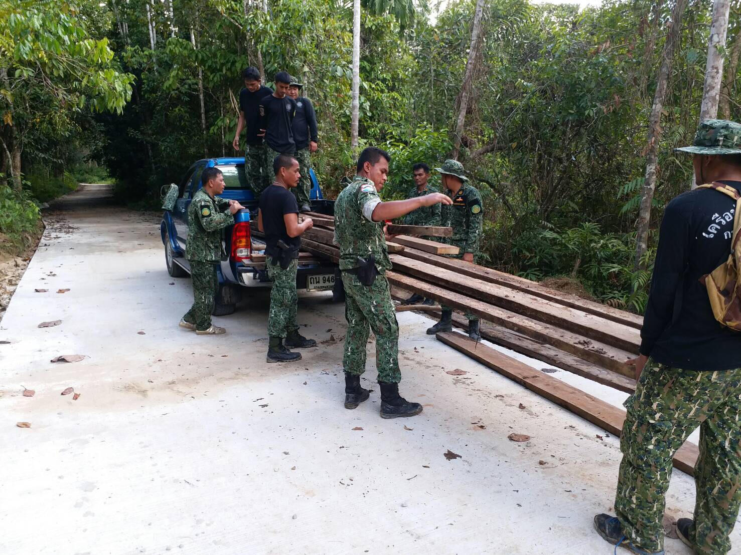 วันนี้ 14/11/60 เวลา 09.00 น.เป็นต้นไป เจ้าหน้าที่หน่วยฯ นธ.4(สุไหงปาดี) กำนัน ต.ริโก๋ ผู้ใหญ่บ้านและผู้ช่วยผู้ใหญ่บ้าน ม.6 บ.กาปงบือแน ต.ริโก๋ อ.สุไหงปาดี จ.นราธิวาส ร่วมตรวจยึดไม้แปรรูปชนิดไม้ตะเคียน จำนวน 28 ชิ้น/แผ่น ปริมาตรรวม 0.65 ลูกบาศก์เมตร เหตุเกิดบริเวณพิกัด 47N 0814926 E 0669471 N ม.6 บ.กาปงบือแน ต.ริโก๋ อ.สุไหงปาดี จ.นราธิวาส รายละเอียดจะแจ้งให้ทราบต่อไป