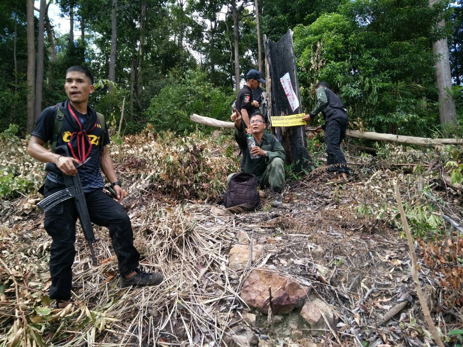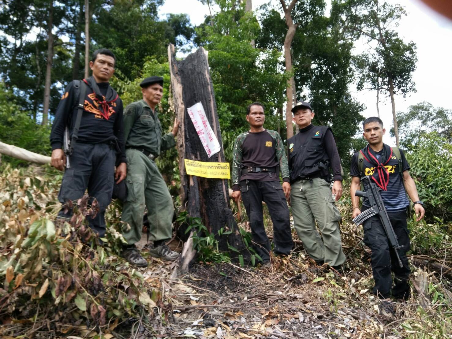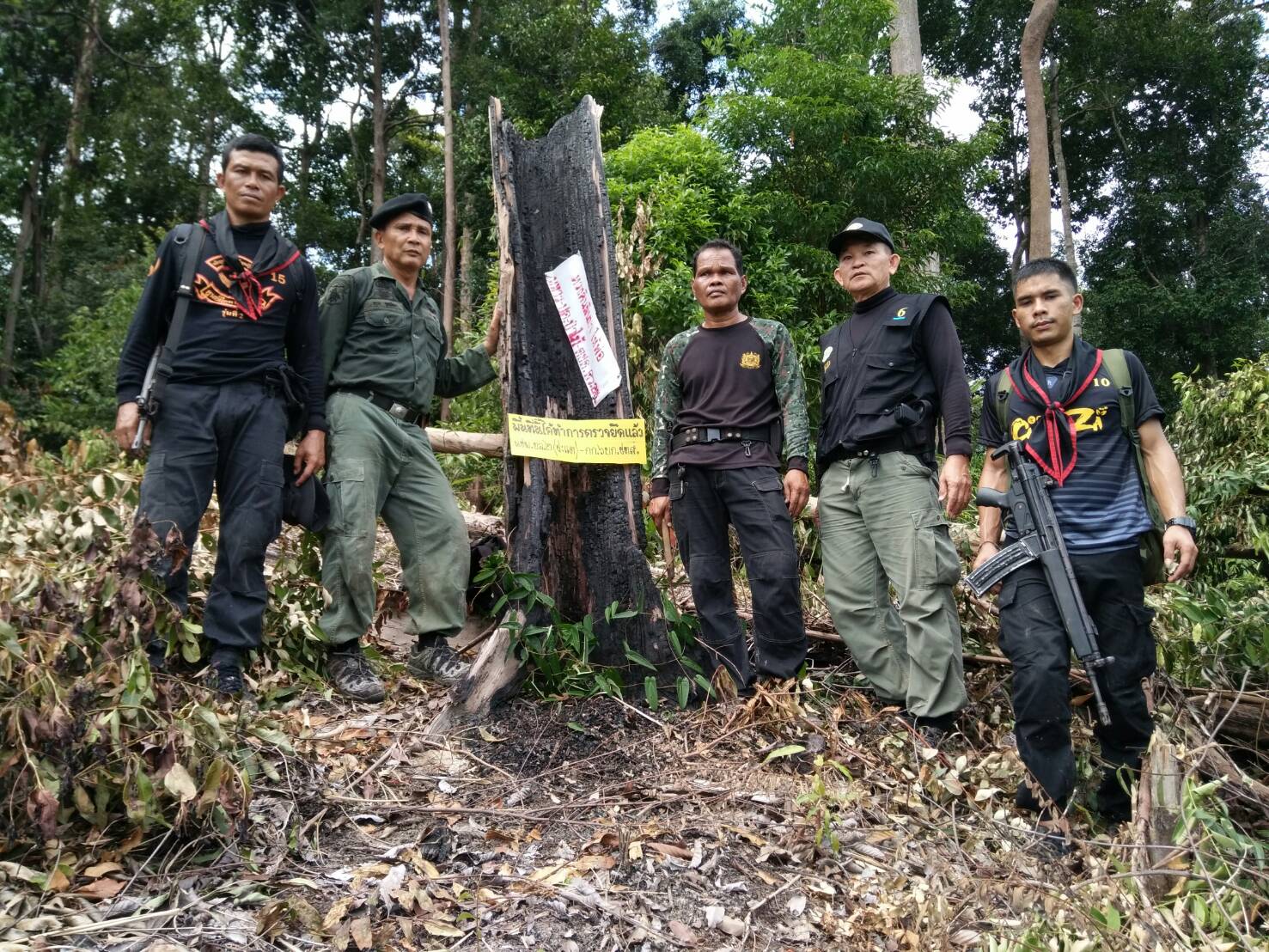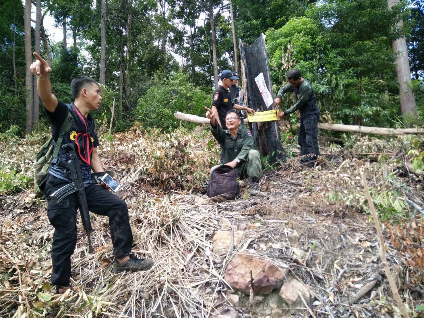 วันนี้ ๑๕ พ.ย. ๖๐ เวลา ๐๙.๐๐ น.- ๑๕.๓๐ น. เจ้าหน้าที่หนวยป้องกันรักษาป่าที่ ยล.๒ (ปะแต)ร่วมกับ เจ้าหน้าที่ ฉก.ตชด.๔๔ เจ้าหน้าที่สายตรวจฯ กก.๖ บก ปทส.จ.ยะลา เจ้าหน้าที่ ศปป.ที่ ๔ ภาคใต้ และเจ้าหน้าที่ทหารพรานที่ ๔๗๑๐ ได้ร่วมกันออกปฏิบัติการพิสูจน์ทราบ กลุ่มบุคคล ที่เข้าไปลักลอบตัดไม้ทำลายทรัพยากรธรรมชาติ และร่วมกันออกตรวจปราบปรามการกระทำผิดว่าด้วยป่าไม้ ในเขตพื้นที่ป่าสงวนแห่งชาติป่าลาบูและป่าถ้ำทะลุ ท้องที่บ้านสิบหลัง ม.๘ ต.ปะแต อ.ยะหา จ.ยะลา คณะเจ้าหน้าที่ได้ตรวจสอบบริเวณดังกล่าวตรวจพบพื้นที่ป่าถูกบุกรุกแผ้วถาง จำนวน ๒ จุด จุดที่ ๑ เนื้อที่ ๑-๑-๒๒ไร่ ที่พิกัด ๔๗. N ๗๓๓๔๔๐ E ๖๙๖๙๓๐ N และจุดที่ ๒ เนื้อที่ ๒-๑-๒๙ ไร่ ที่พิกัด ๔๗ N ๗๓๒๑๒๖ E ๖๙๗๖๙๘ และหน่วยฯได้แจ้งความร้องทุกข์ต่อพนักงานสอบสวน สภ.ปะแต ไว้แล้ว จุดที่ ๑ ตาม ปจว.ข้อที่ ๓ เวลา ๑๘.๐๐ น. คดีที่ ๑๕๙/๒๕๖๐ ลงวันที่ ๑๕ พ.ย.๖๐ และ จุดที่ ๒ ตาม ปจว. ข้อที่ ๒ เวลา ๑๗.๓๐ น. คดีที่ ๑๕๘/๒๕๖๐ ลงวันที่ ๑๕ พ.ย.๖๐