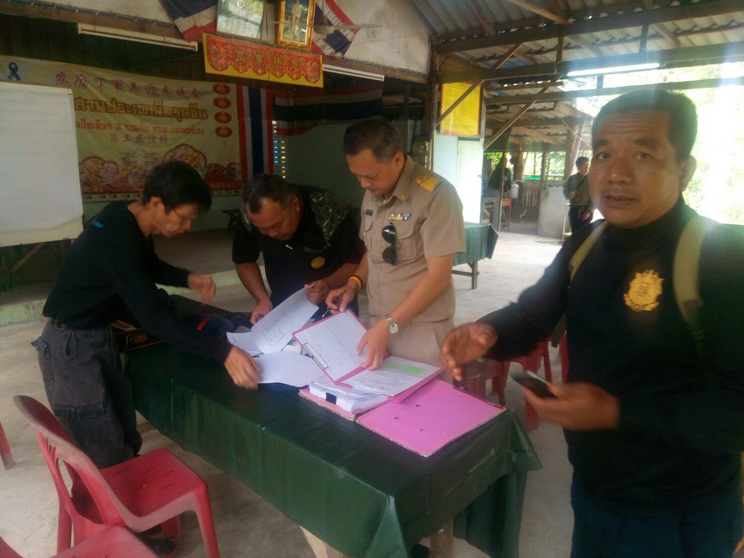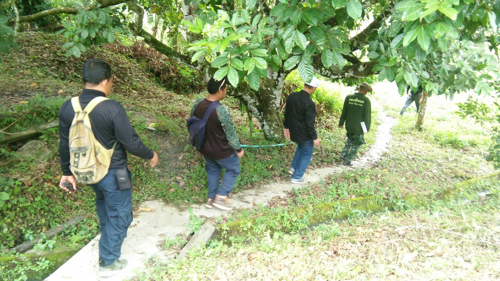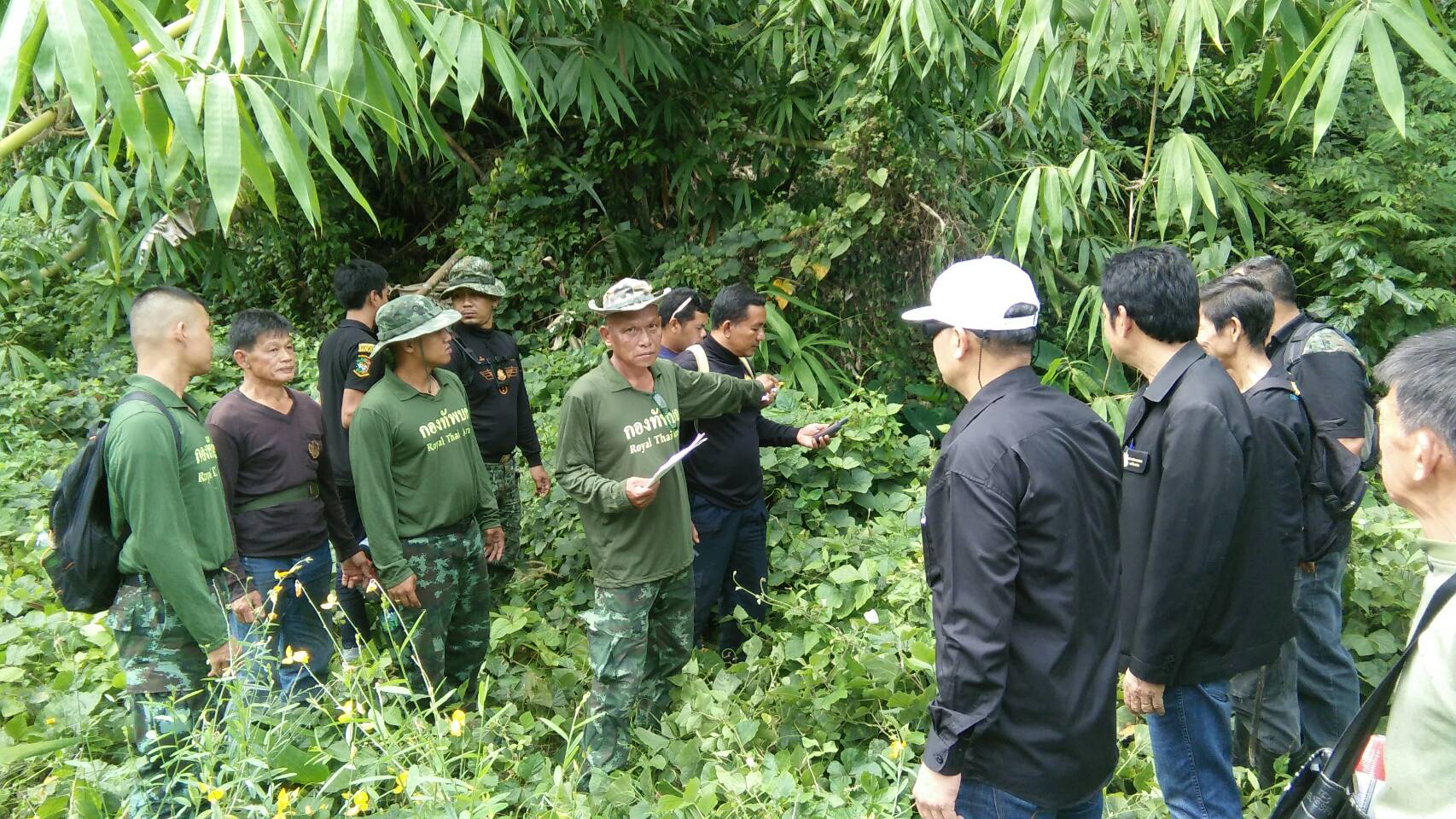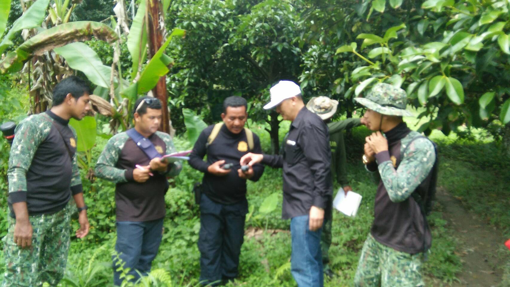 จ.ส.อ ทรงวุฒิ สุบรรณภาพ เจ้าหน้าที่ที่ดิน ผยย.มทบ๔๖ ร.ต มานพ หอมสุวรรณ กอ.รมน.จังหวัดยะลาพร้อมด้วยผู้ร่วมพัฒนาชาติไทย บ.ปิยมิตร๓ ร่วมกันออกตรวจสภาพป่า ในการที่กองทัพบกยื่นขอ ต่อใบอนุญาต ขอใช้ประโยชน์พื้นที่ป่าสงวนแห่งชาติ ป่าเบตง บ้านปิยมิตร ๓ ต.อัยเยอร์เวง อ.เบตง จ.ยะลา ต่อไปอีก ๓๐ ปี