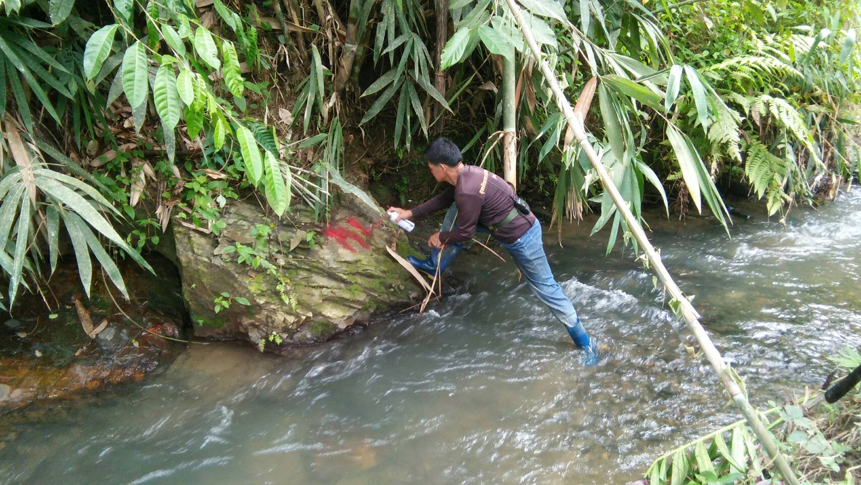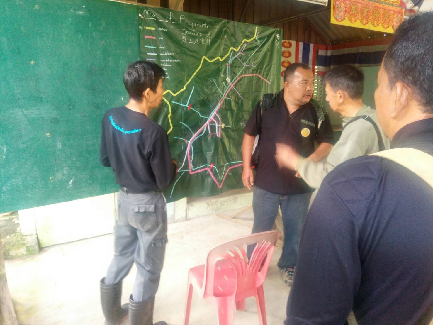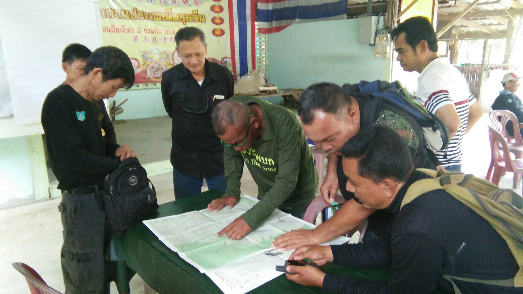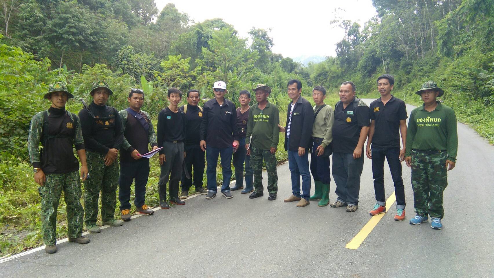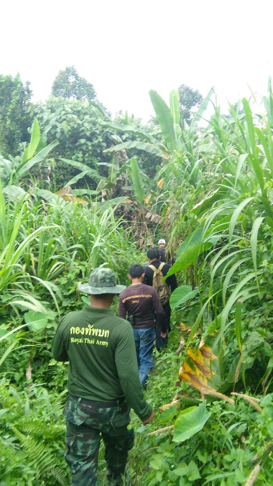 จ.ส.อ ทรงวุฒิ สุบรรณภาพ เจ้าหน้าที่ที่ดิน ผยย.มทบ๔๖ ร.ต มานพ หอมสุวรรณ กอ.รมน.จังหวัดยะลาพร้อมด้วยผู้ร่วมพัฒนาชาติไทย บ.ปิยมิตร๓ ร่วมกันออกตรวจสภาพป่า ในการที่กองทัพบกยื่นขอ ต่อใบอนุญาต ขอใช้ประโยชน์พื้นที่ป่าสงวนแห่งชาติ ป่าเบตง บ้านปิยมิตร ๓ ต.อัยเยอร์เวง อ.เบตง จ.ยะลา ต่อไปอีก ๓๐ ปี