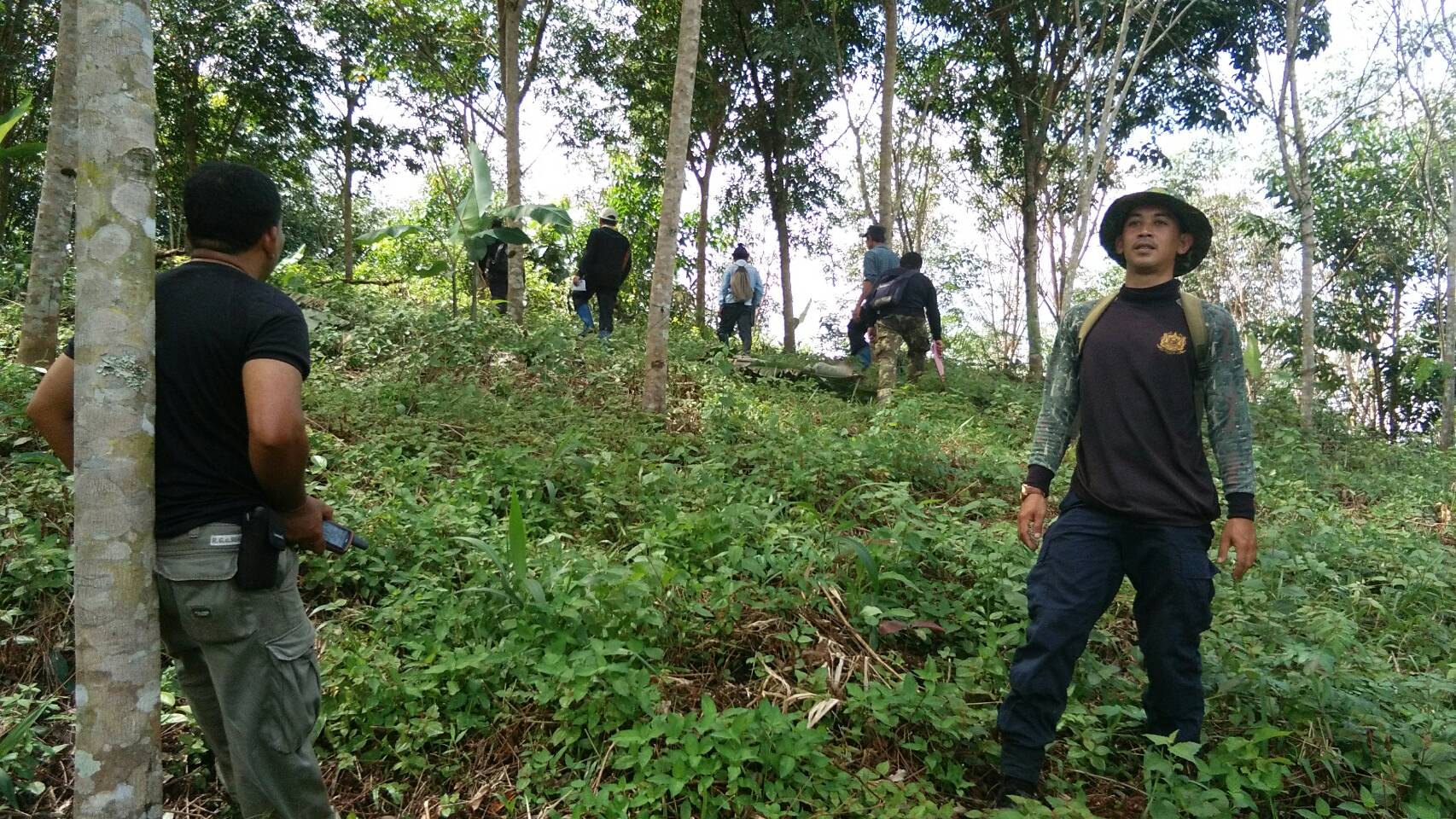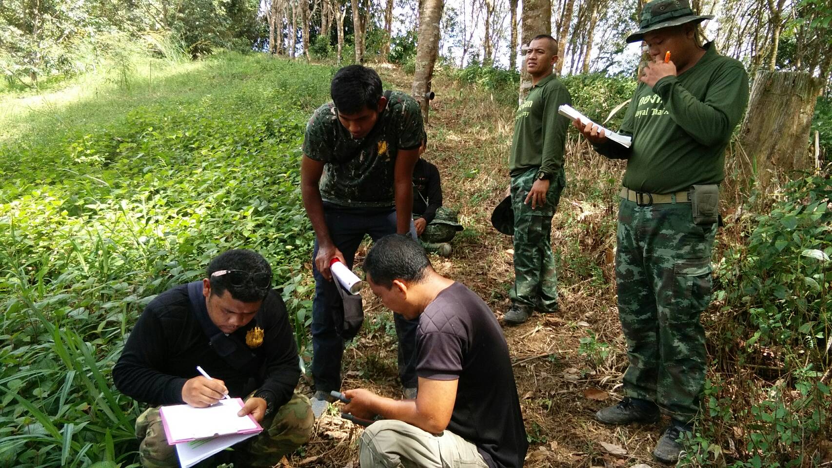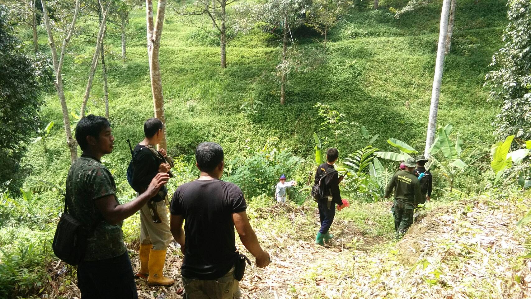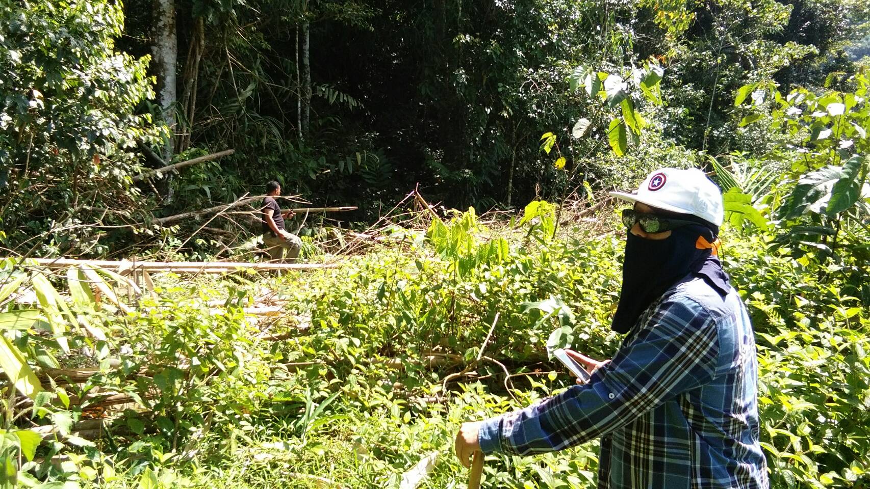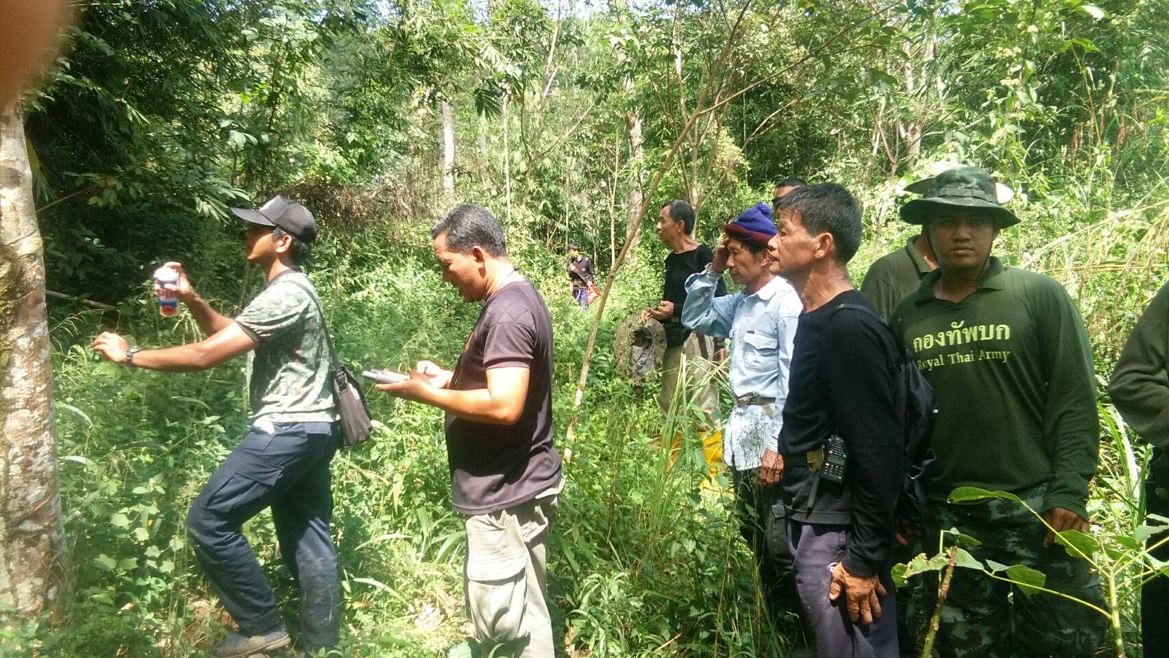 จ.ส.อ ทรงวุฒิ สุบรรณภาพ เจ้าหน้าที่ที่ดิน ผยย.มทบ๔๖ ร.ต มานพ หอมสุวรรณ กอ.รมน.จังหวัดยะลาพร้อมด้วยผู้ร่วมพัฒนาชาติไทย บ.ปิยมิตร๓ ร่วมกันออกตรวจสภาพป่า ในการที่กองทัพบกยื่นขอ ต่อใบอนุญาต ขอใช้ประโยชน์พื้นที่ป่าสงวนแห่งชาติ ป่าเบตง บ้านปิยมิตร ๓ ต.อัยเยอร์เวง อ.เบตง จ.ยะลา ต่อไปอีก ๓๐ ปี