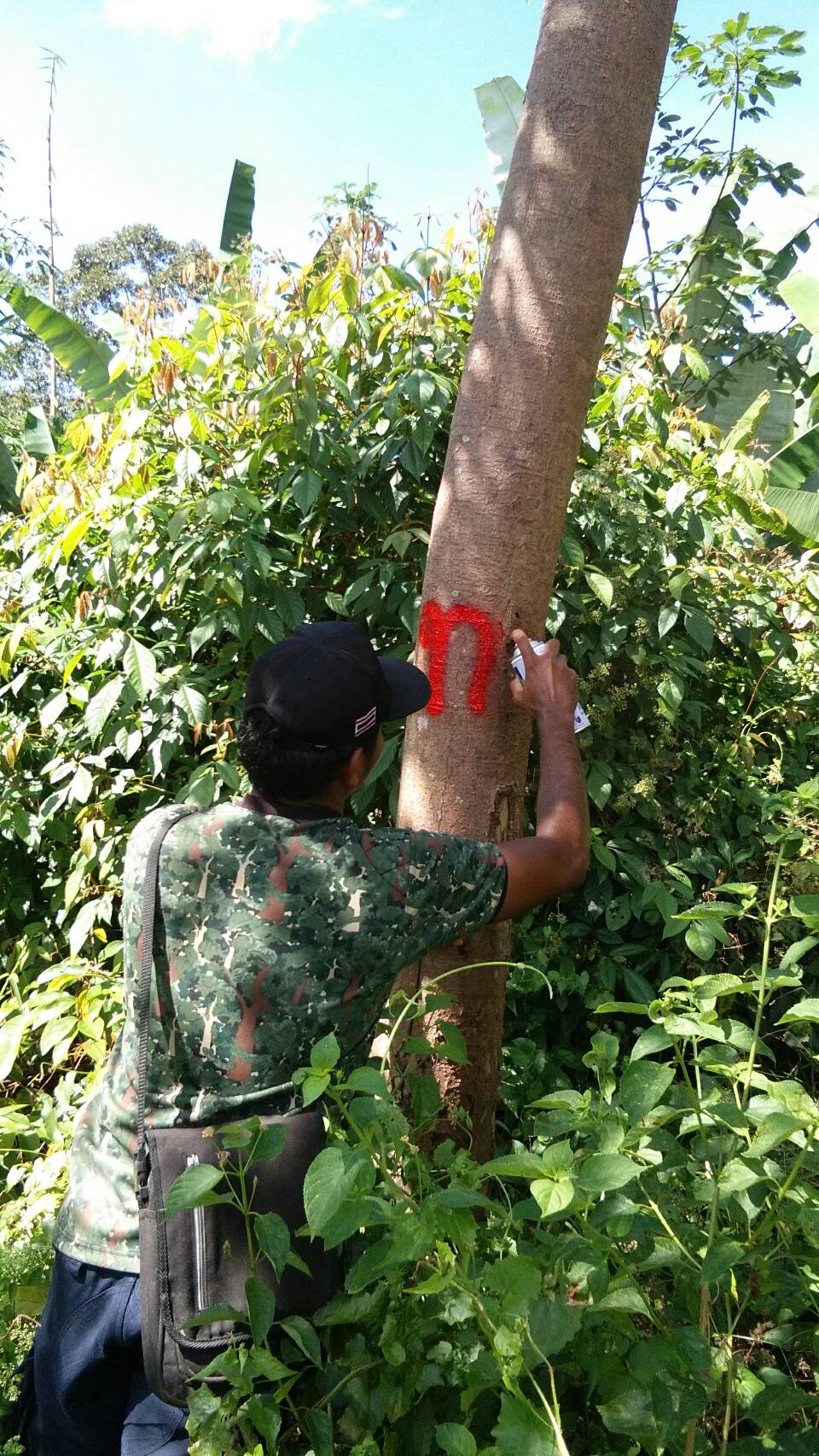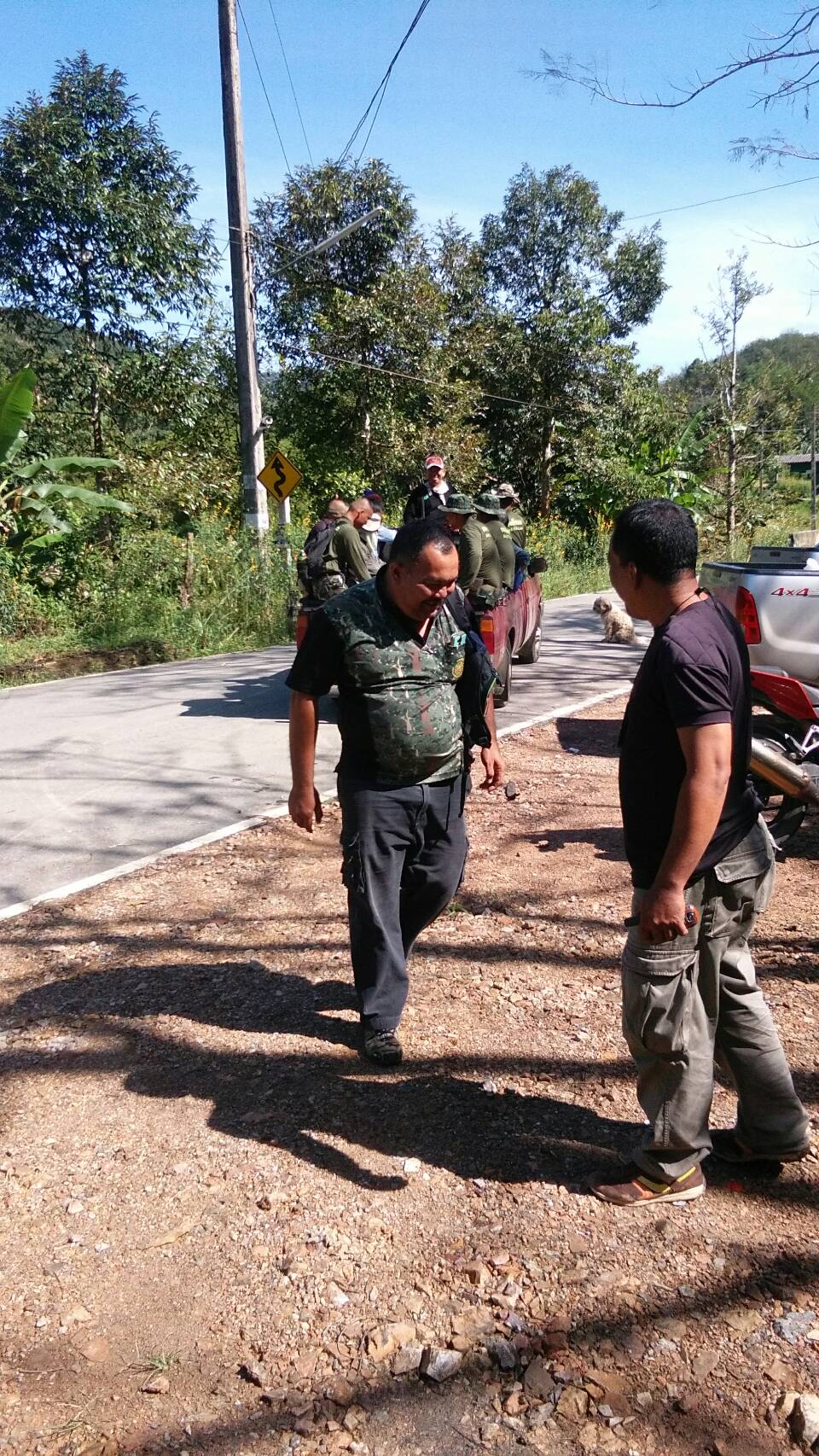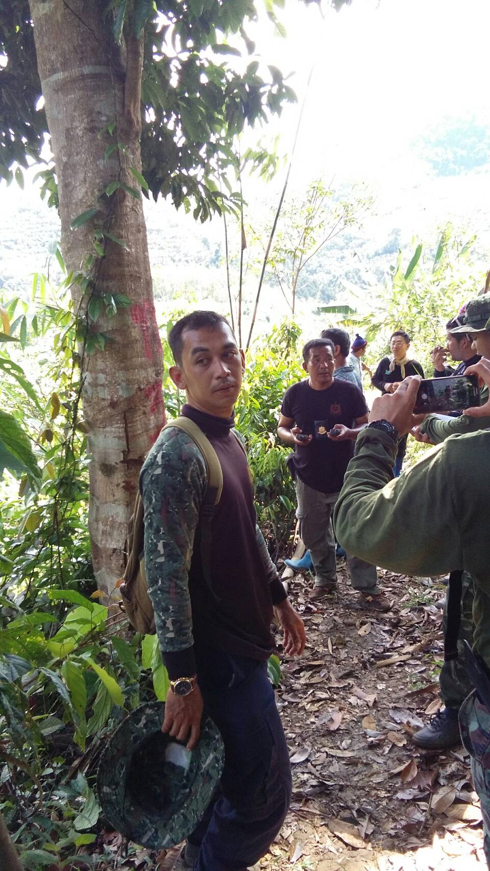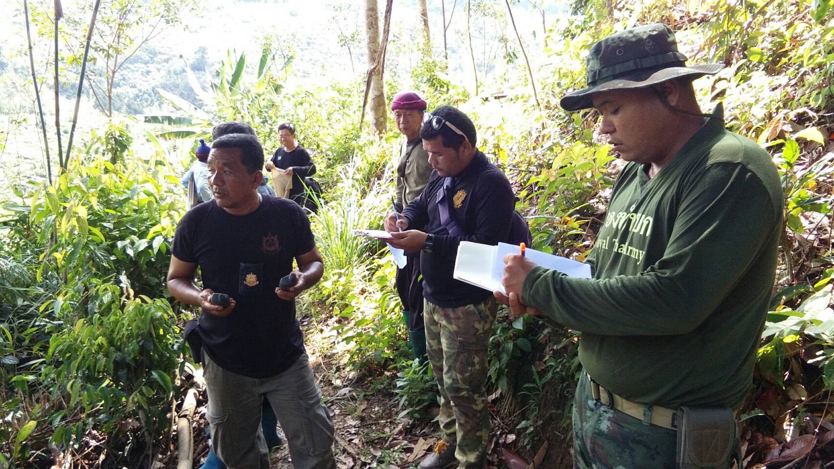 จ.ส.อ ทรงวุฒิ สุบรรณภาพ เจ้าหน้าที่ที่ดิน ผยย.มทบ๔๖ ร.ต มานพ หอมสุวรรณ กอ.รมน.จังหวัดยะลาพร้อมด้วยผู้ร่วมพัฒนาชาติไทย บ.ปิยมิตร๓ ร่วมกันออกตรวจสภาพป่า ในการที่กองทัพบกยื่นขอ ต่อใบอนุญาต ขอใช้ประโยชน์พื้นที่ป่าสงวนแห่งชาติ ป่าเบตง บ้านปิยมิตร ๓ ต.อัยเยอร์เวง อ.เบตง จ.ยะลา ต่อไปอีก ๓๐ ปี