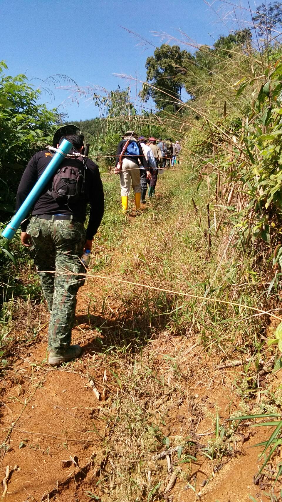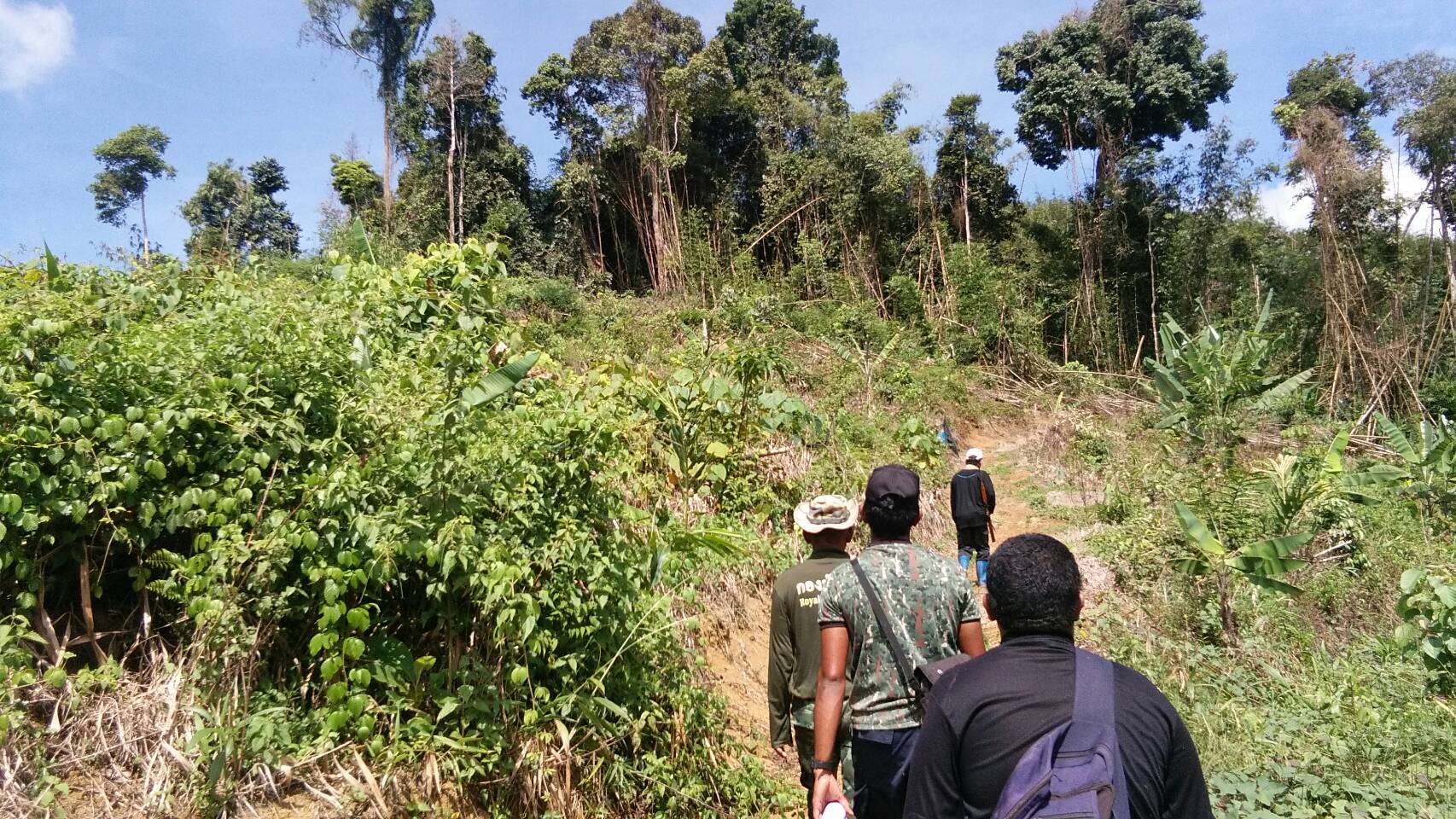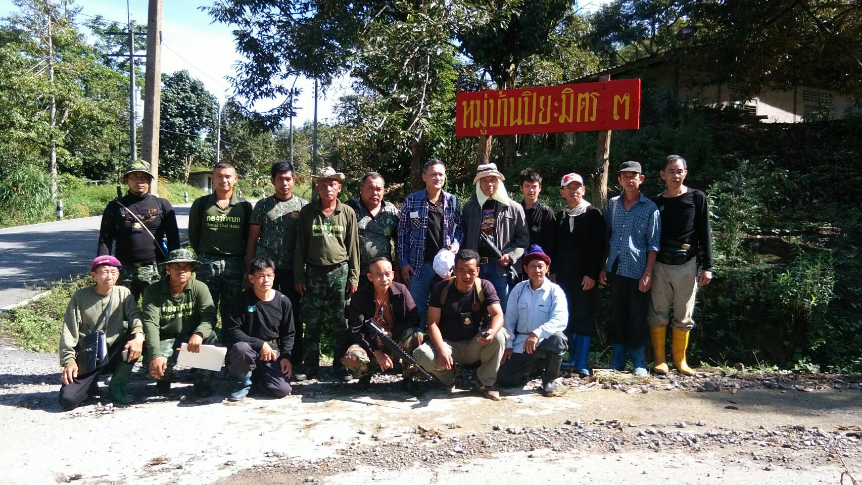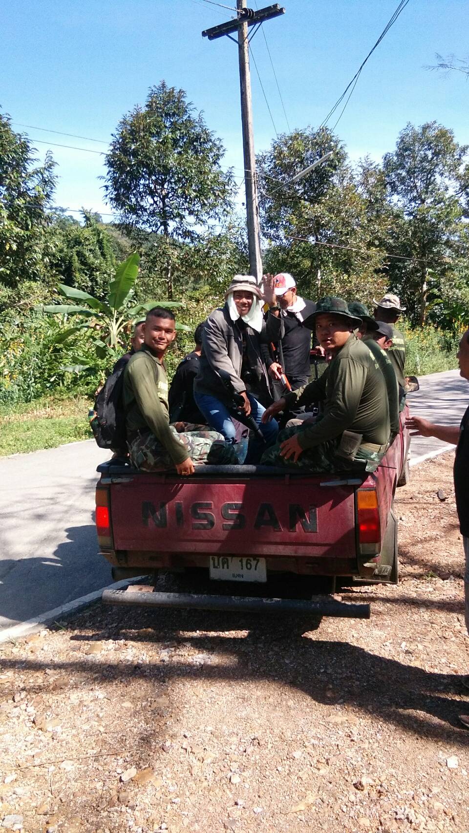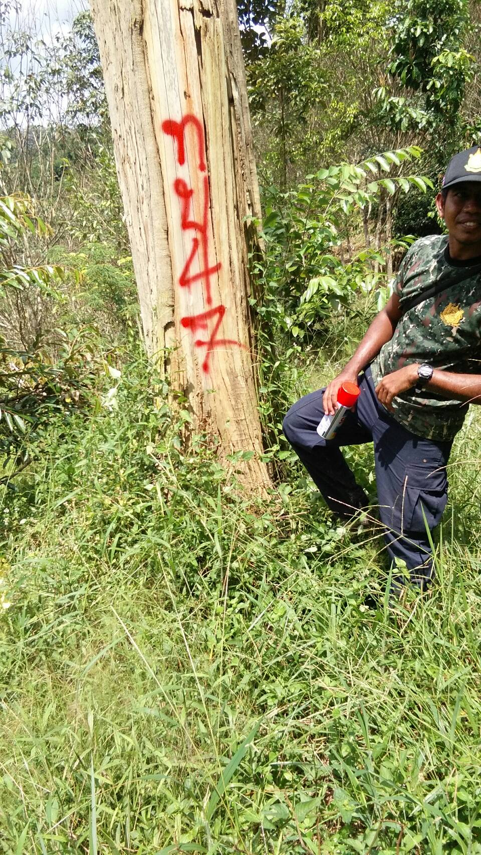 จ.ส.อ ทรงวุฒิ สุบรรณภาพ เจ้าหน้าที่ที่ดิน ผยย.มทบ๔๖ ร.ต มานพ หอมสุวรรณ กอ.รมน.จังหวัดยะลาพร้อมด้วยผู้ร่วมพัฒนาชาติไทย บ.ปิยมิตร๓ ร่วมกันออกตรวจสภาพป่า ในการที่กองทัพบกยื่นขอ ต่อใบอนุญาต ขอใช้ประโยชน์พื้นที่ป่าสงวนแห่งชาติ ป่าเบตง บ้านปิยมิตร ๓ ต.อัยเยอร์เวง อ.เบตง จ.ยะลา ต่อไปอีก ๓๐ ปี