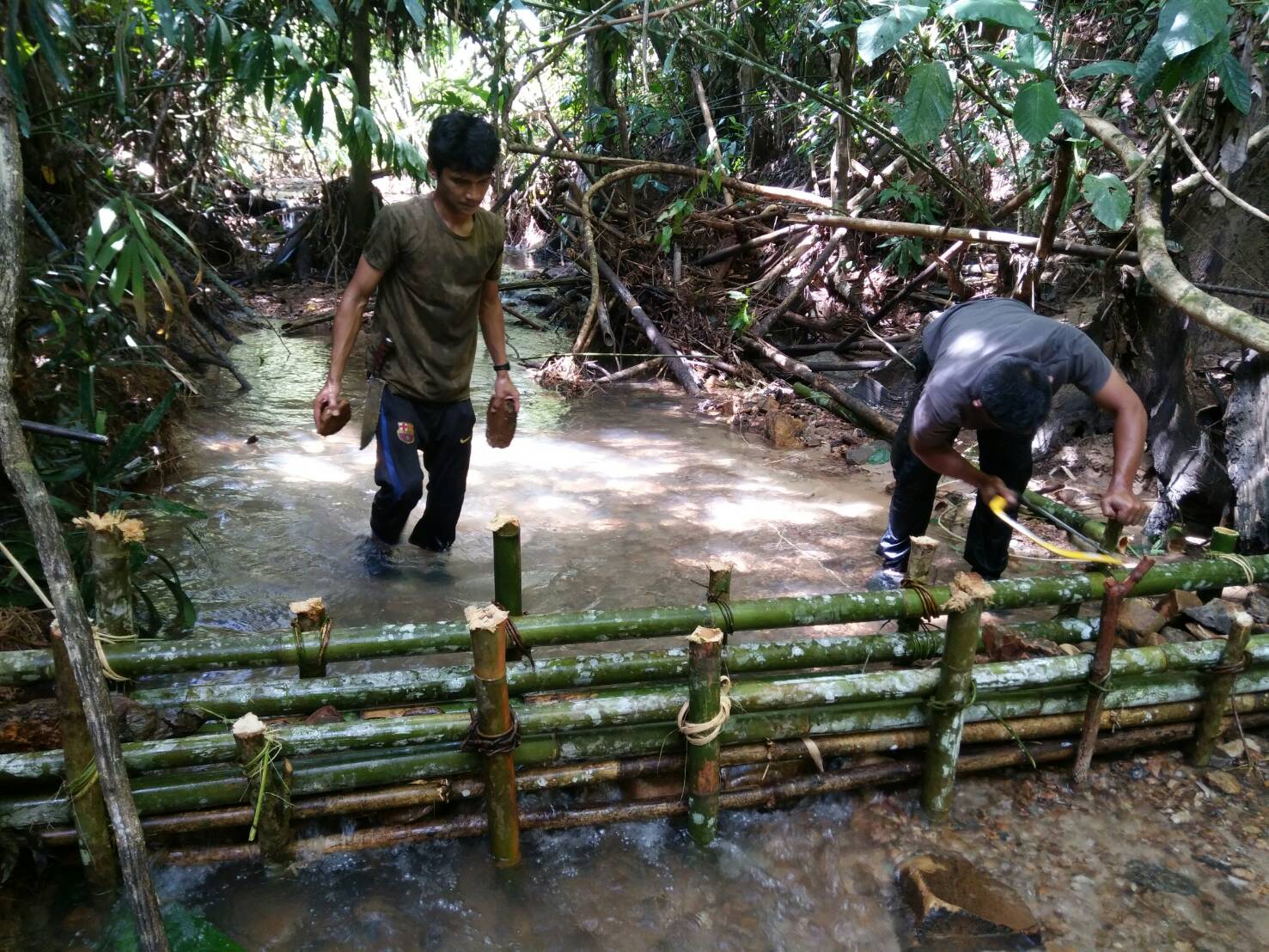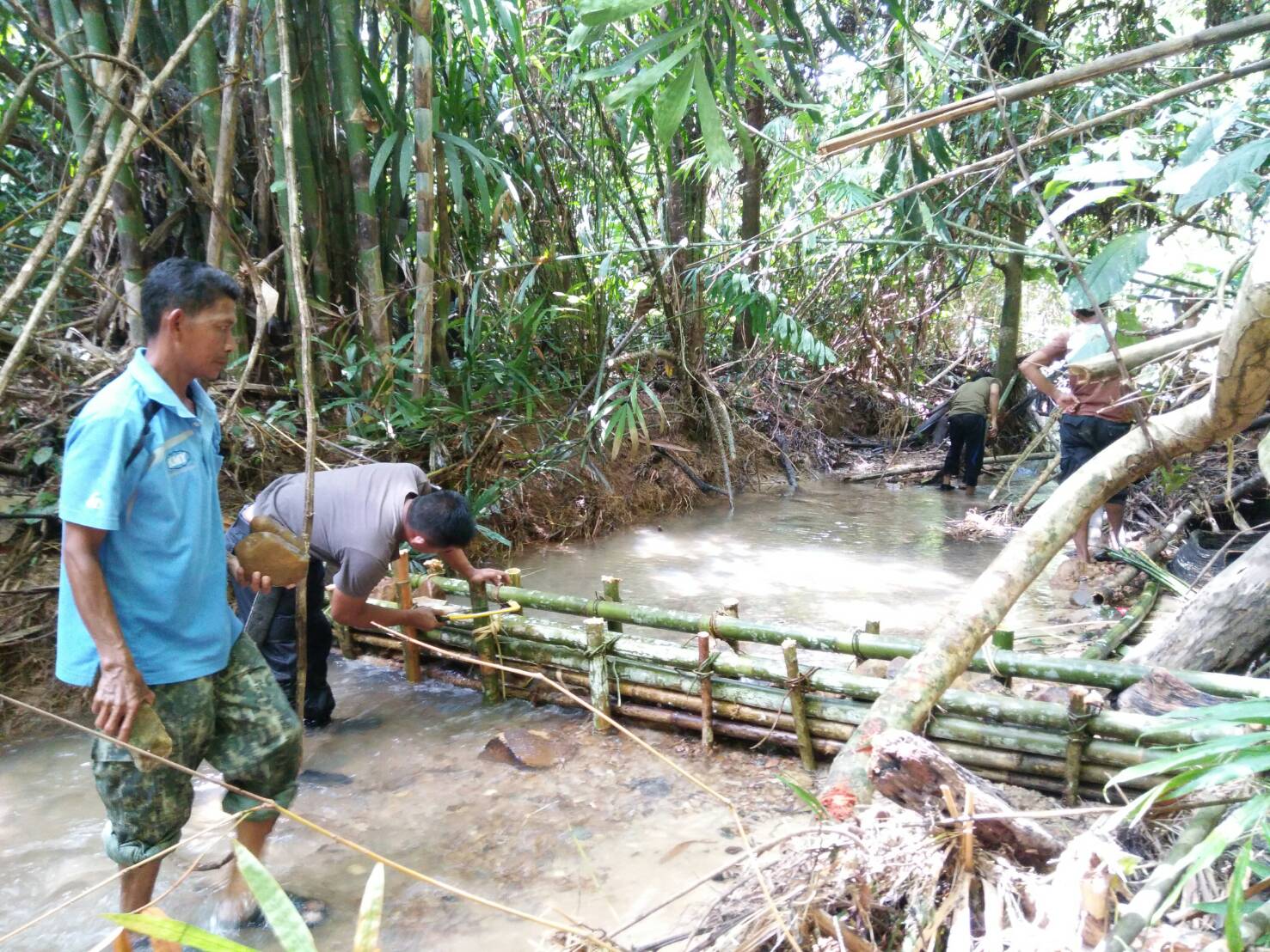 วันนี้ ๒๒ พ.ย ๖๐ เวลา ๐๘.๓๐ น. เจ้าหน้าที่หน่วยฯ ยล.๒ (ปะแต) ได้ร่วมกันทำฝายชลอน้ำ เพื่อทำให้พื้นทีมีความชุ่มชื้นและต้นไม้มีความสมบรูณ์บริเวณเขตป่าสงวนแห่งชาติป่าลาบูและป่าถ้ำทะลุ ท้องที่ บ้านบายอ ม.๑ ต.ปะแต อ.ยะหา จ.ยะลา จำนวน ๒ จุด จุดที่ ๑ ที่พิกัด ๔๗ N ๗๓๓๐๗๒ E ๗๐๐๕๖๔ N จุดที่ ๒ ที่พิกัด ๔๗ N ๗๐๐๕๔๘ N