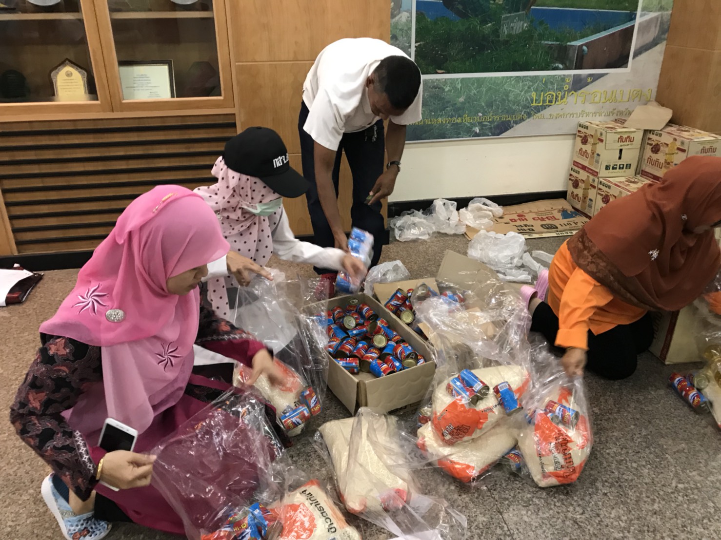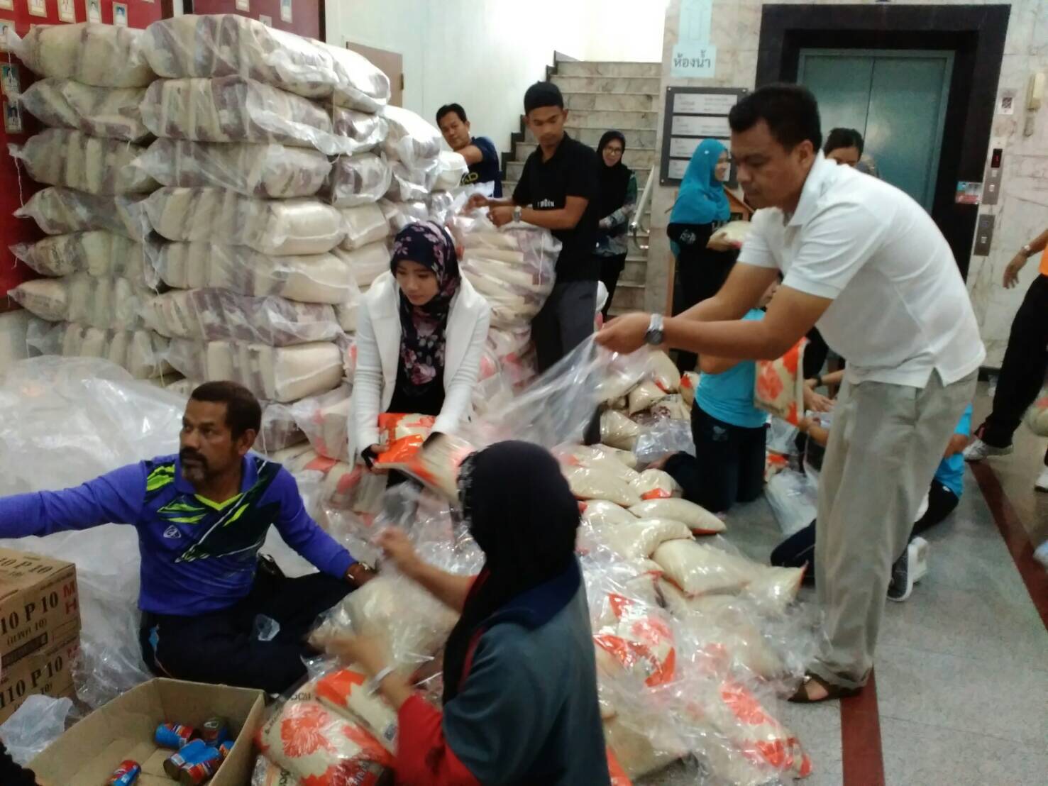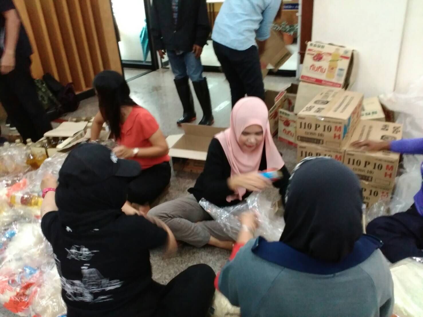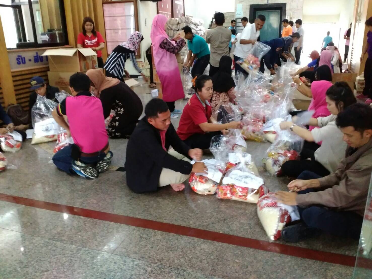 วันนี้ 28 พฤศจิกายน 2560 นางสาวกัลยา โตะแวอายี นักวิชาการสิ่งแวดล้อมชำนาญการพิเศษ รก. ผอ. สนง. ทสจ. ยะลา นำคณะเจ้าหน้าที่ สนง. ทสจ. ยะลา คณะกรรมการเครือข่าย ทสม. จังหวัดยะลา และเจ้าหน้าที่ศูนย์ประสานงานป่าไม้จังหวัดยะลา ไปร่วมจิตอาสา ช่วยกันบรรจุเครื่องบริโภค (ข้าวสาร ปลากระป๋อง น้ำมันพืช และมาม่า ซือดะ) ที่ศูนย์อำนวยการเฉพาะกิจป้องกันและแก้ไขปัญหา อุทกภัย และดินโคลนถ่ม องค์การบริหารส่วนจังหวัดยะลา เพื่อช่วยเหลือพี่น้องชาวยะลา ที่ประสบปัญหาอุทกภัยและดินโคลนถล่ม เนื่องจากฝนตกหนักอย่างต่อเนื่องมาหลายวันในพื้นที่จังหวัดยะลา ขอขอบคุณ องค์การบริหารส่วนจังหวัดยะลา ที่เตรียมมอบถุงยังชีพให้กับกับพี่น้องประชาชนที่ประสบภัย ในวันพรุ่งนี้