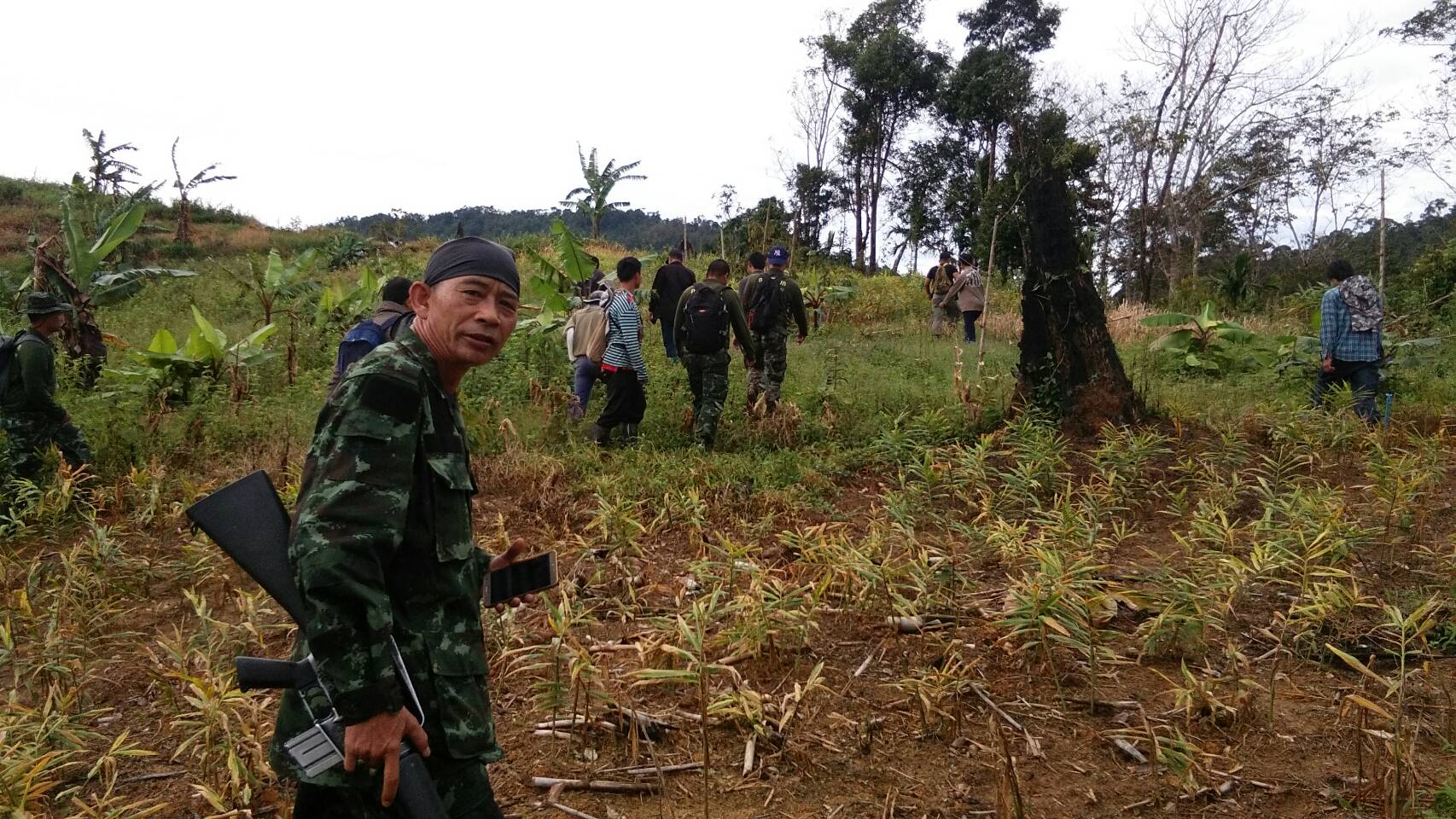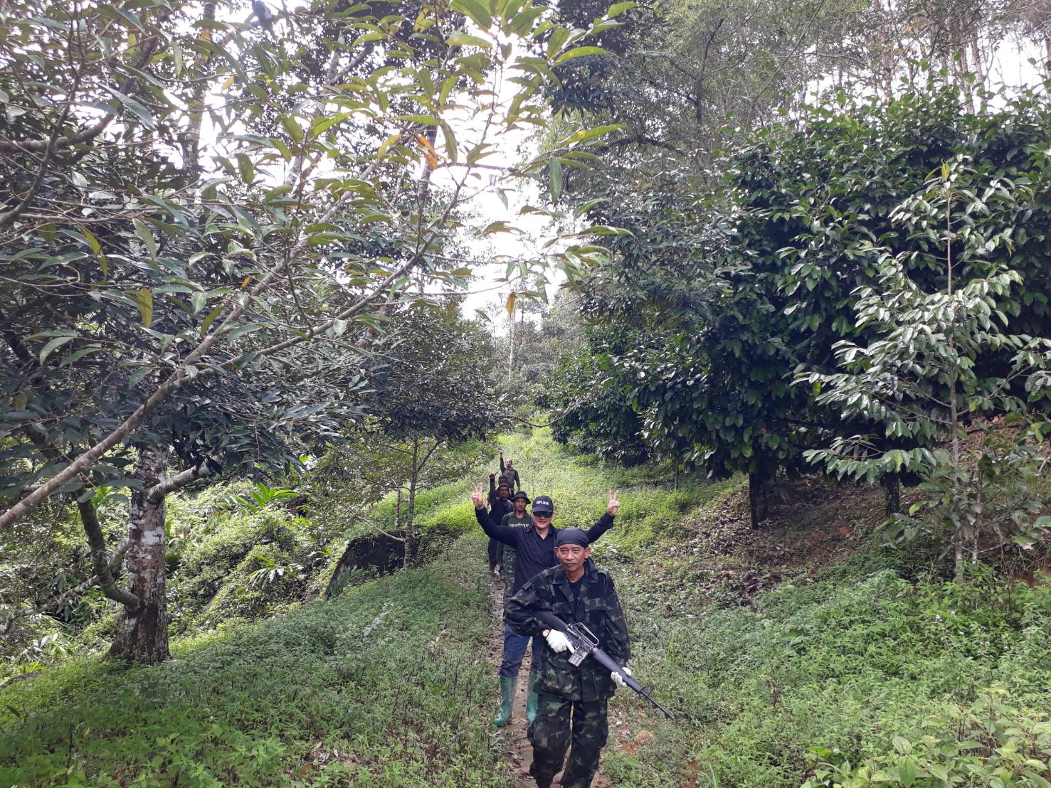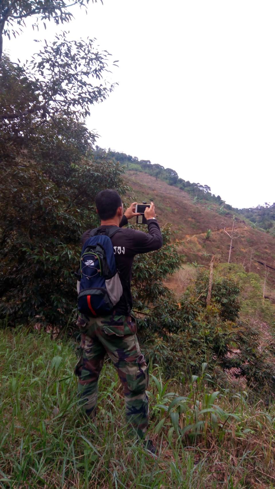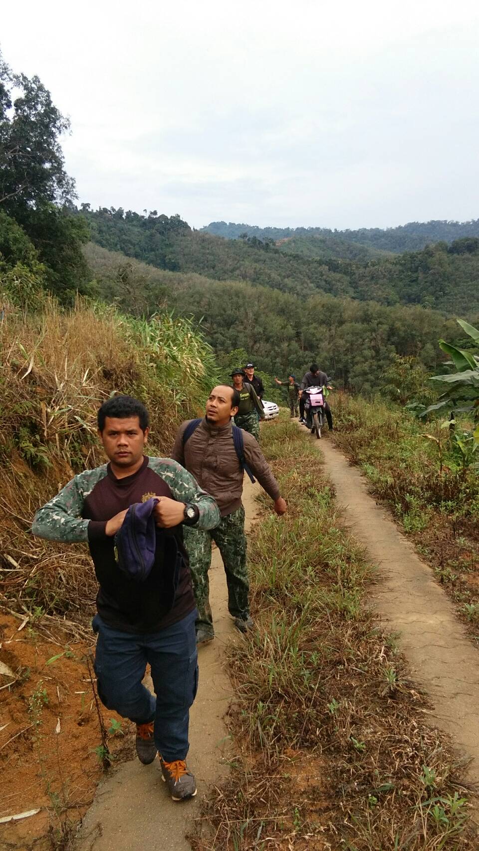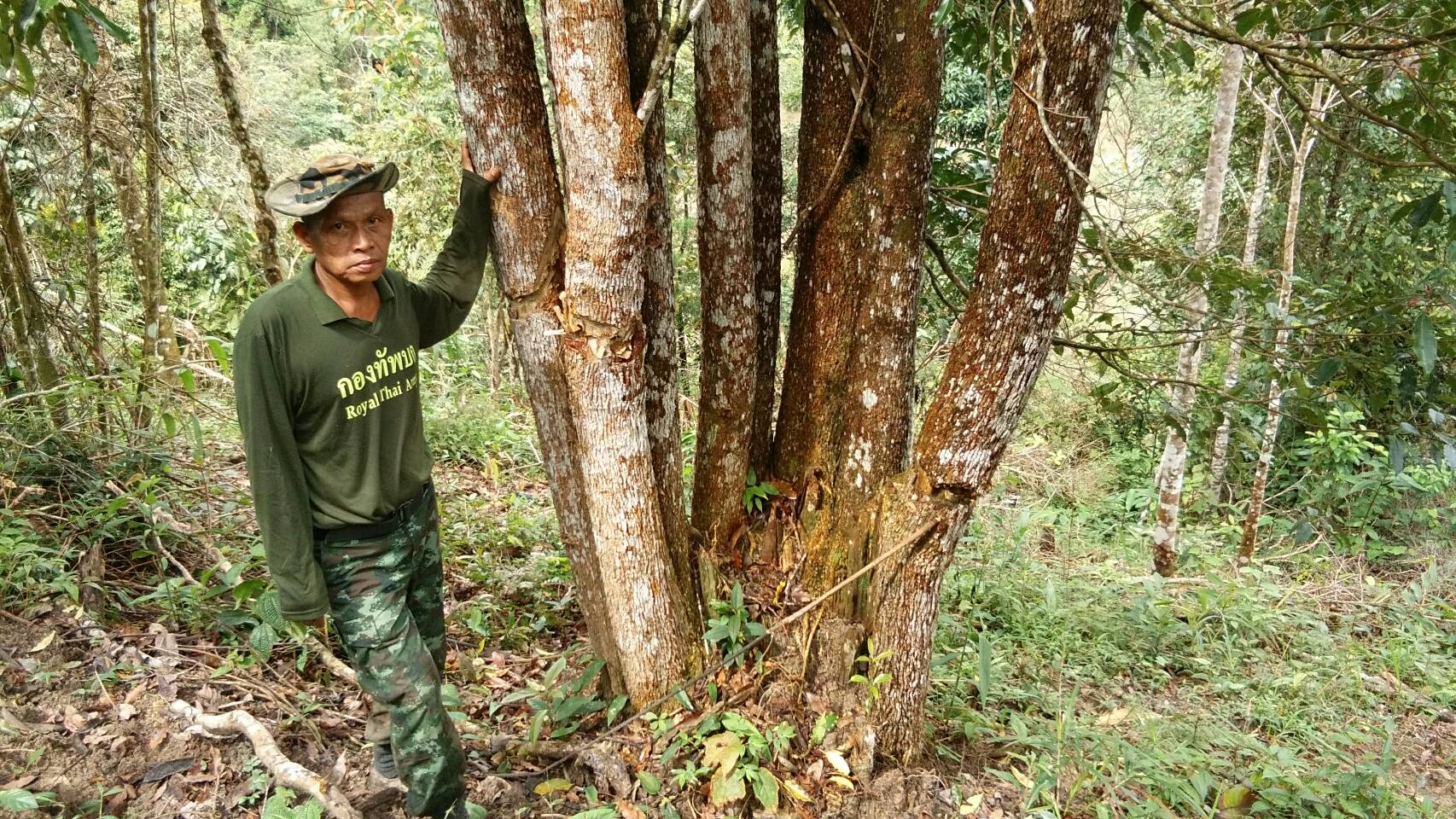 จ.ส.อ ทรงวุฒิ สุบรรณภาพ เจ้าหน้าที่ที่ดิน ผยย.มทบ๔๖ ร.ต มานพ หอมสุวรรณ กอ.รมน.จังหวัดยะลาพร้อมด้วยผู้ร่วมพัฒนาชาติไทย บ.ปิยมิตร๓ ร่วมกันออกตรวจสภาพป่า ในการที่กองทัพบกยื่นขอ ต่อใบอนุญาต ขอใช้ประโยชน์พื้นที่ป่าสงวนแห่งชาติ ป่าเบตง บ้านปิยมิตร ๒ต.ตาเนาะแมเราะ อ.เบตง จ.ยะลา ต่อไปอีก ๓๐ ปี