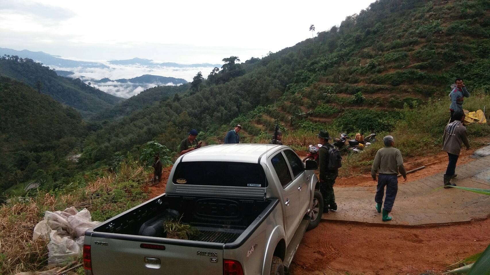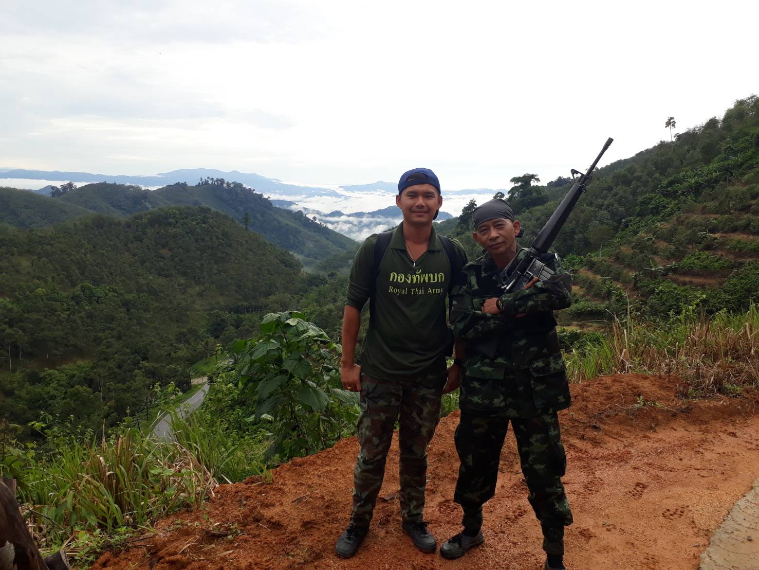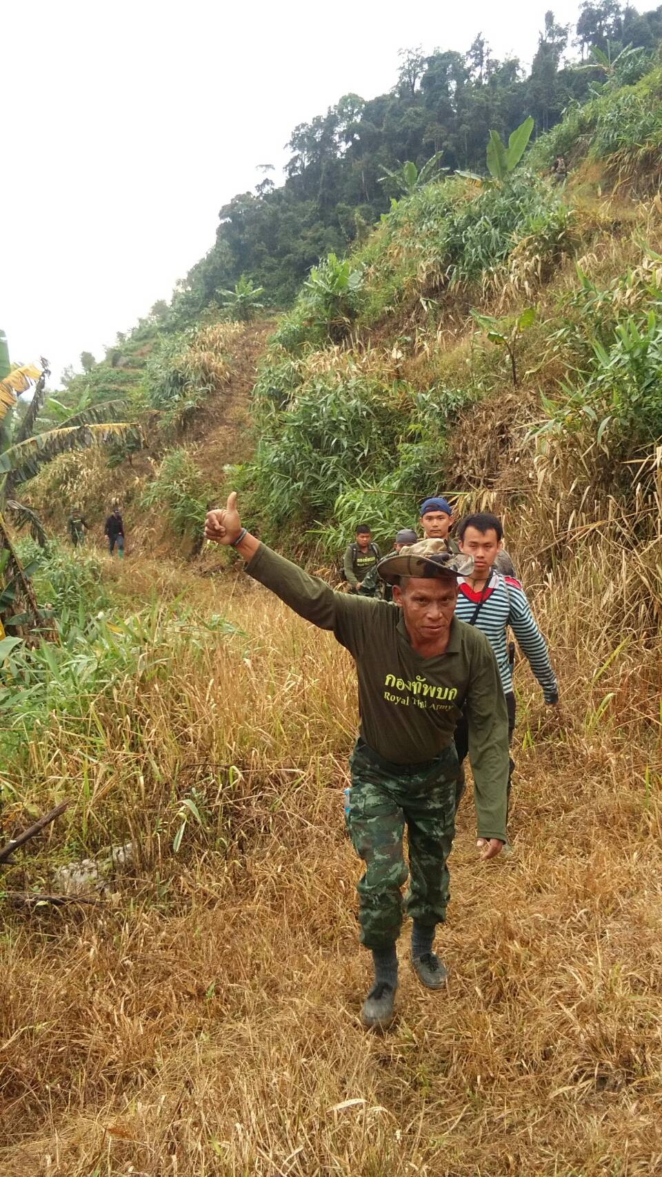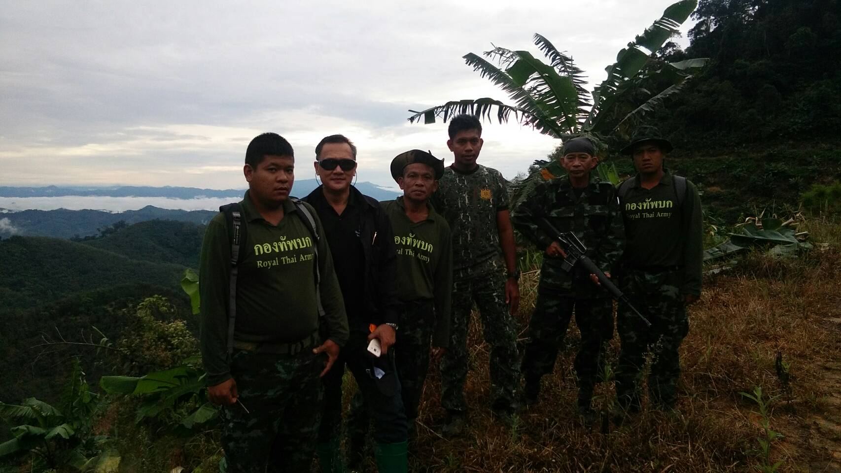 จ.ส.อ ทรงวุฒิ สุบรรณภาพ เจ้าหน้าที่ที่ดิน ผยย.มทบ๔๖ ร.ต มานพ หอมสุวรรณ กอ.รมน.จังหวัดยะลาพร้อมด้วยผู้ร่วมพัฒนาชาติไทย บ.ปิยมิตร๓ ร่วมกันออกตรวจสภาพป่า ในการที่กองทัพบกยื่นขอ ต่อใบอนุญาต ขอใช้ประโยชน์พื้นที่ป่าสงวนแห่งชาติ ป่าเบตง บ้านปิยมิตร ๒ต.ตาเนาะแมเราะ อ.เบตง จ.ยะลา ต่อไปอีก ๓๐ ปี